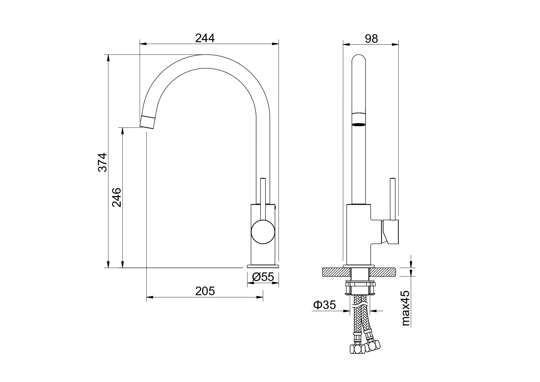 Поворотный излив из латуни, вращение на 360°