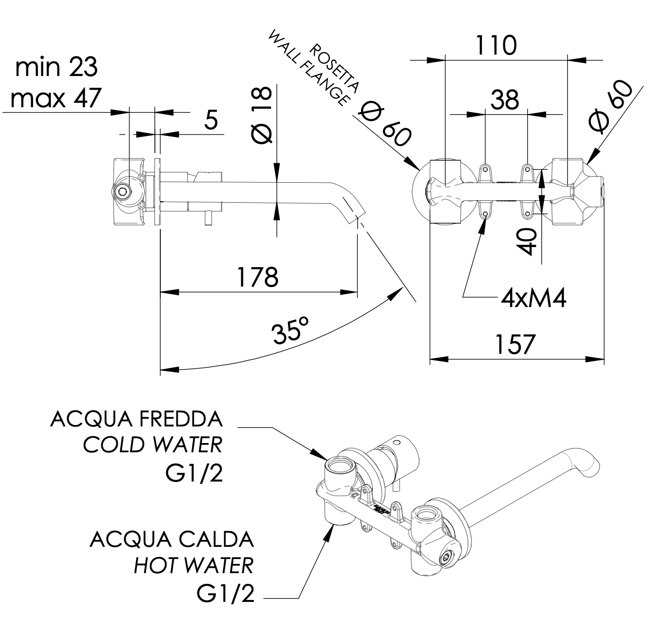—Смеситель для раковины Daniel Tokyo TK632PLCR встраиваемый в стену хром