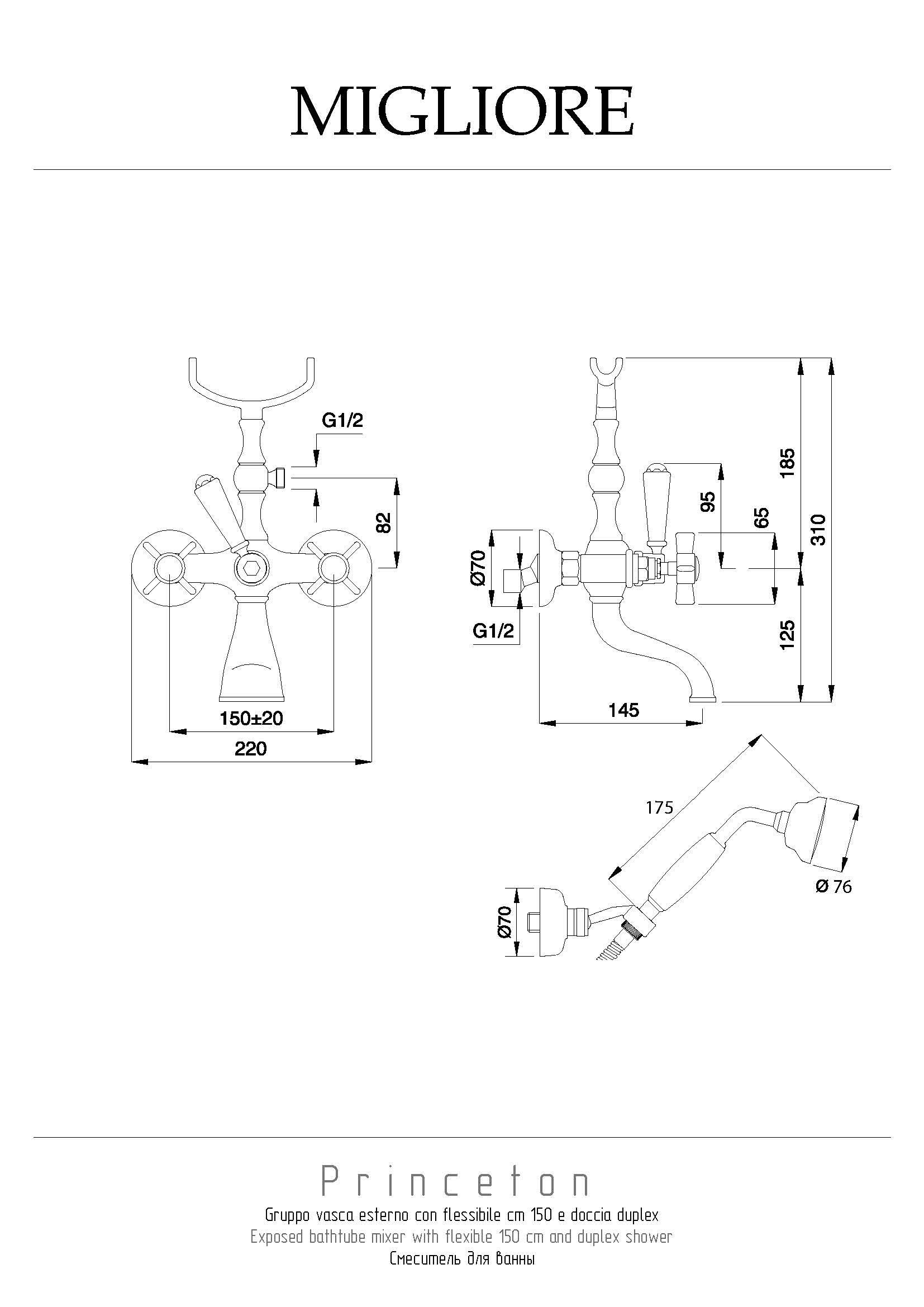 Смеситель для ванной Migliore PRINCETON 19344 настенный бронза