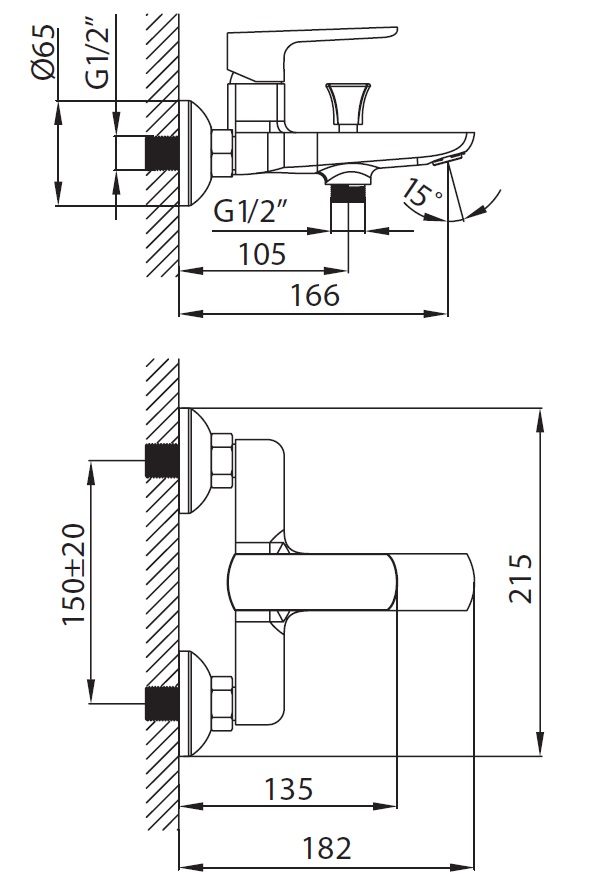 —Смеситель для ванны Creavit SP2500 настенный хром