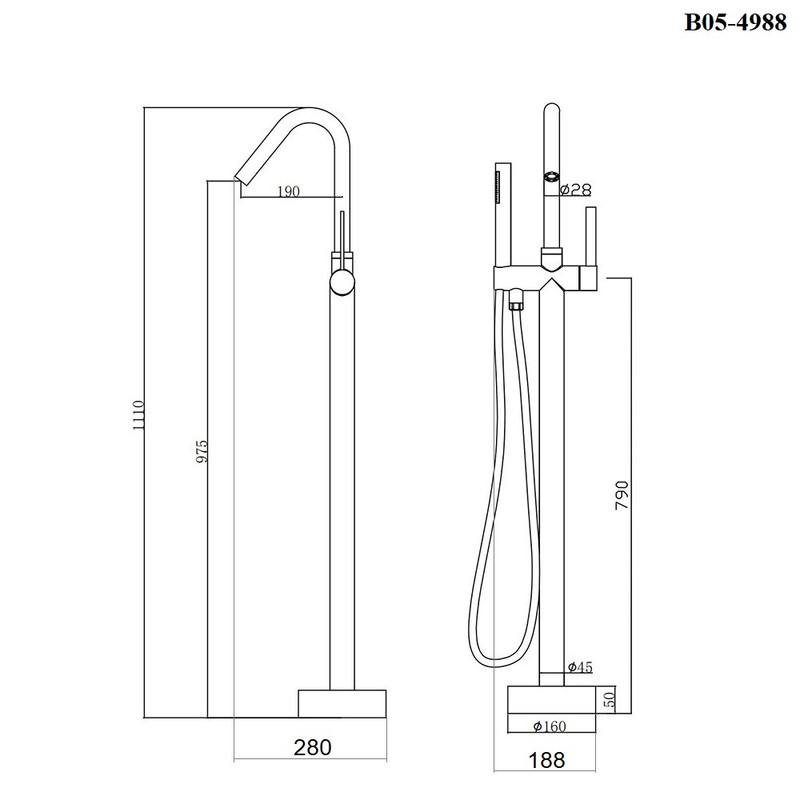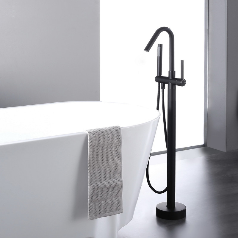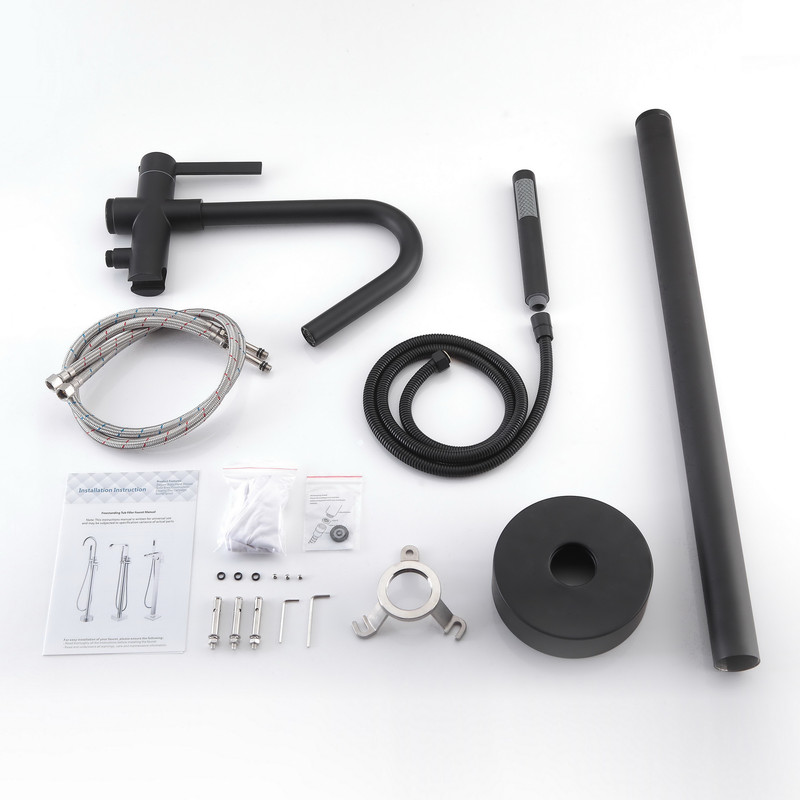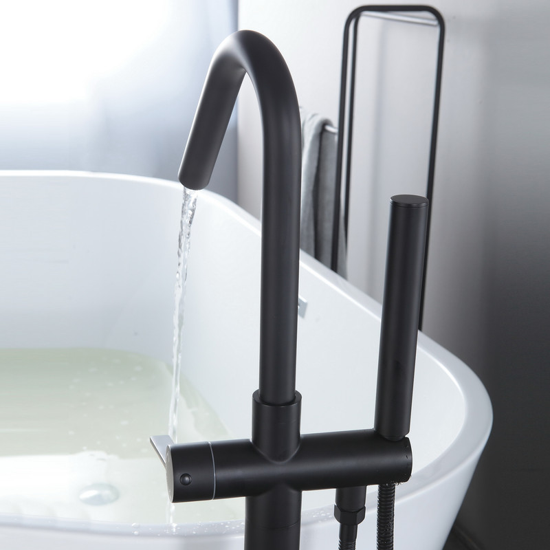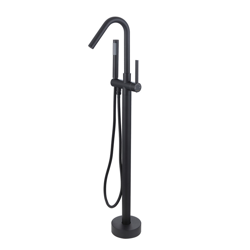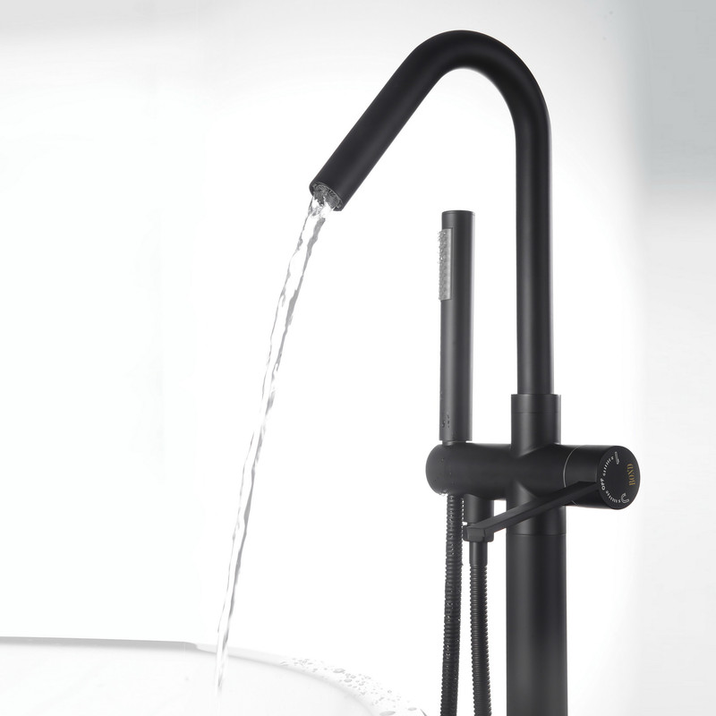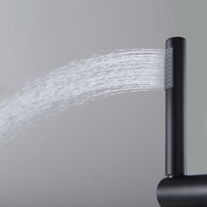 Чёрный однорычажный отдельностоящий напольный смеситель из латуни BOND Circle B05-4988 для ванны/душа с поворотным изливом - воплощение изысканного стиля и идеальное дополнение интерьера современной ванной комнаты. Удобной длинной ручкой, повторяющей форму излива, легко управлять потоком воды. Встроенный аэратор помогает экономить воду, насыщает ее пузырьками воздуха и делает струю мягкой, предотвращая разбрызгивание. Он снижает шум воды, ускоряет выветривание хлора, а также фильтрует частицы мусора, задерживая их на сетке. Аэратор прост в обслуживании – благодаря специальному углублению его легко выкрутить и очистить. Латунный смеситель для ванны/душа BOND Cube B05-4988 - это комфорт и удобство, практичность и надёжность. В комплект входит шланг и стильный ручной душ, удобно фиксирующийся на держателе.