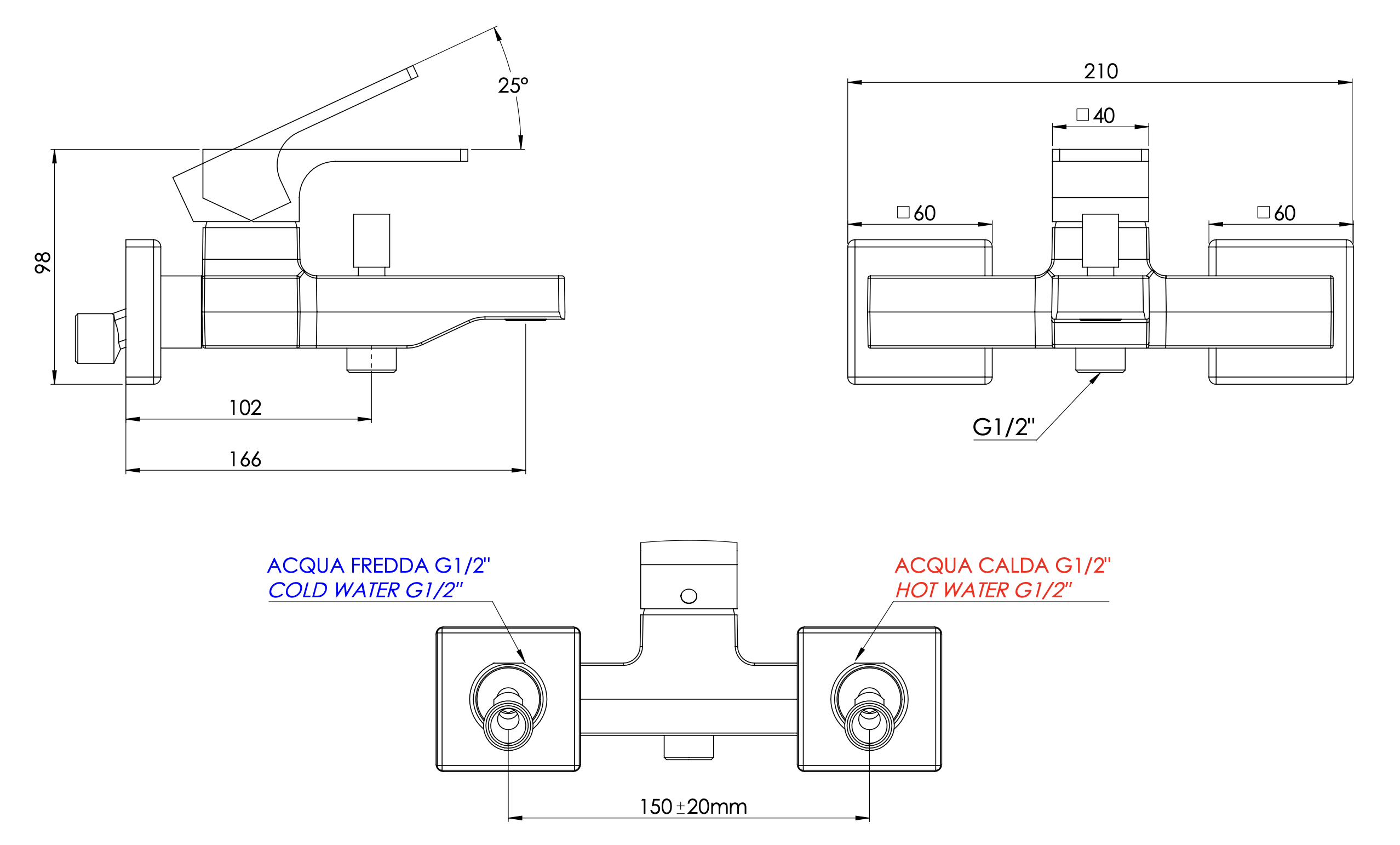Смеситель для ванны Mariani Rebel B14212RE настенный черный