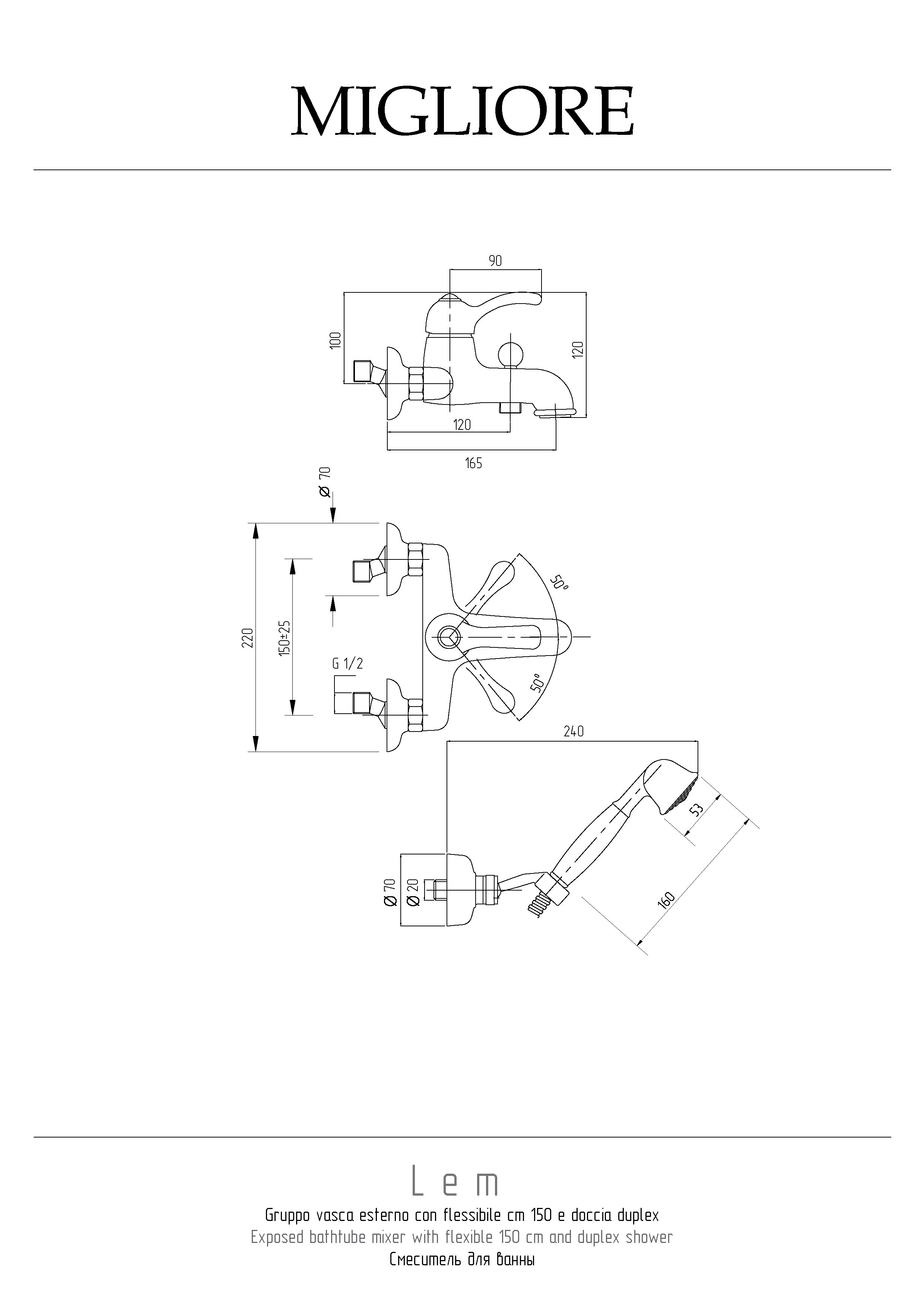 Смеситель для ванны Migliore LEM 25882 настенный золото