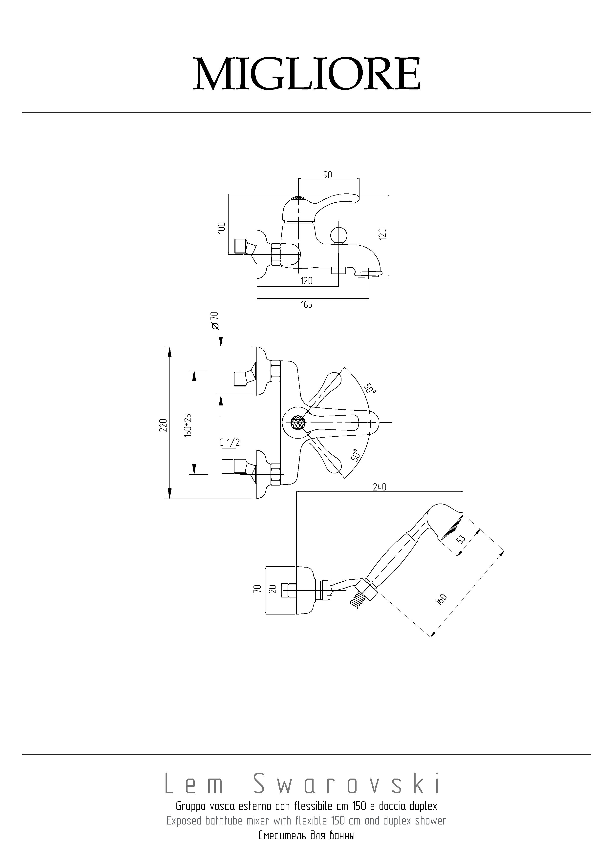 Смеситель для ванны Migliore LEM SWAROVSKI 18874 настенный бронза