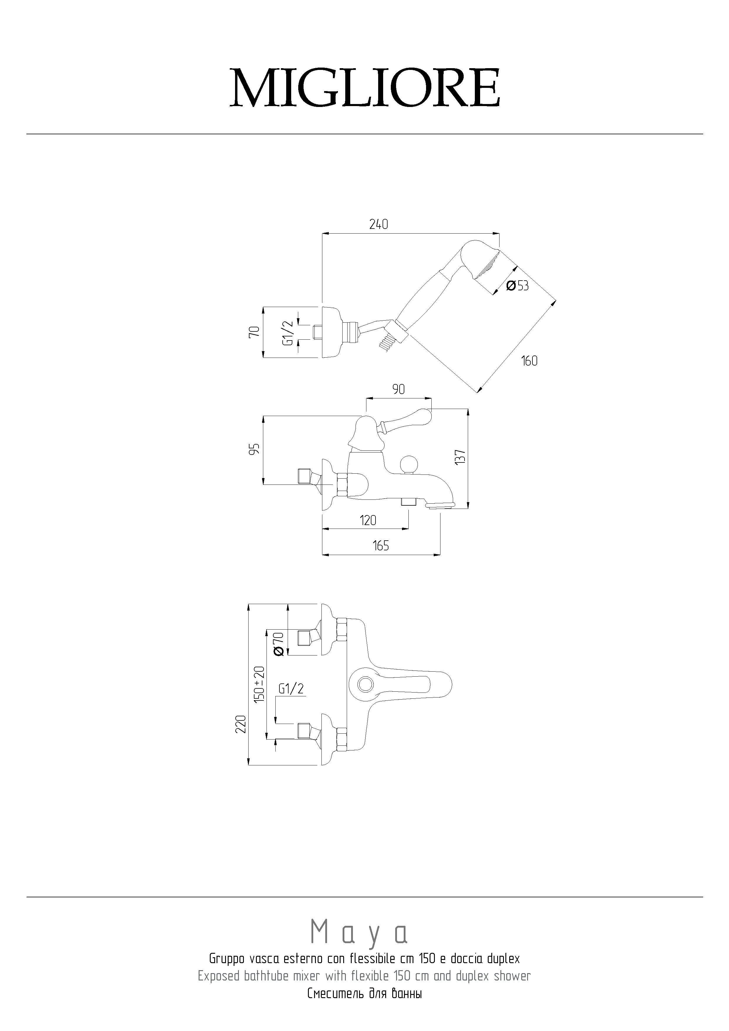 —Смеситель для ванны Migliore MAYA 18921 настенный хром