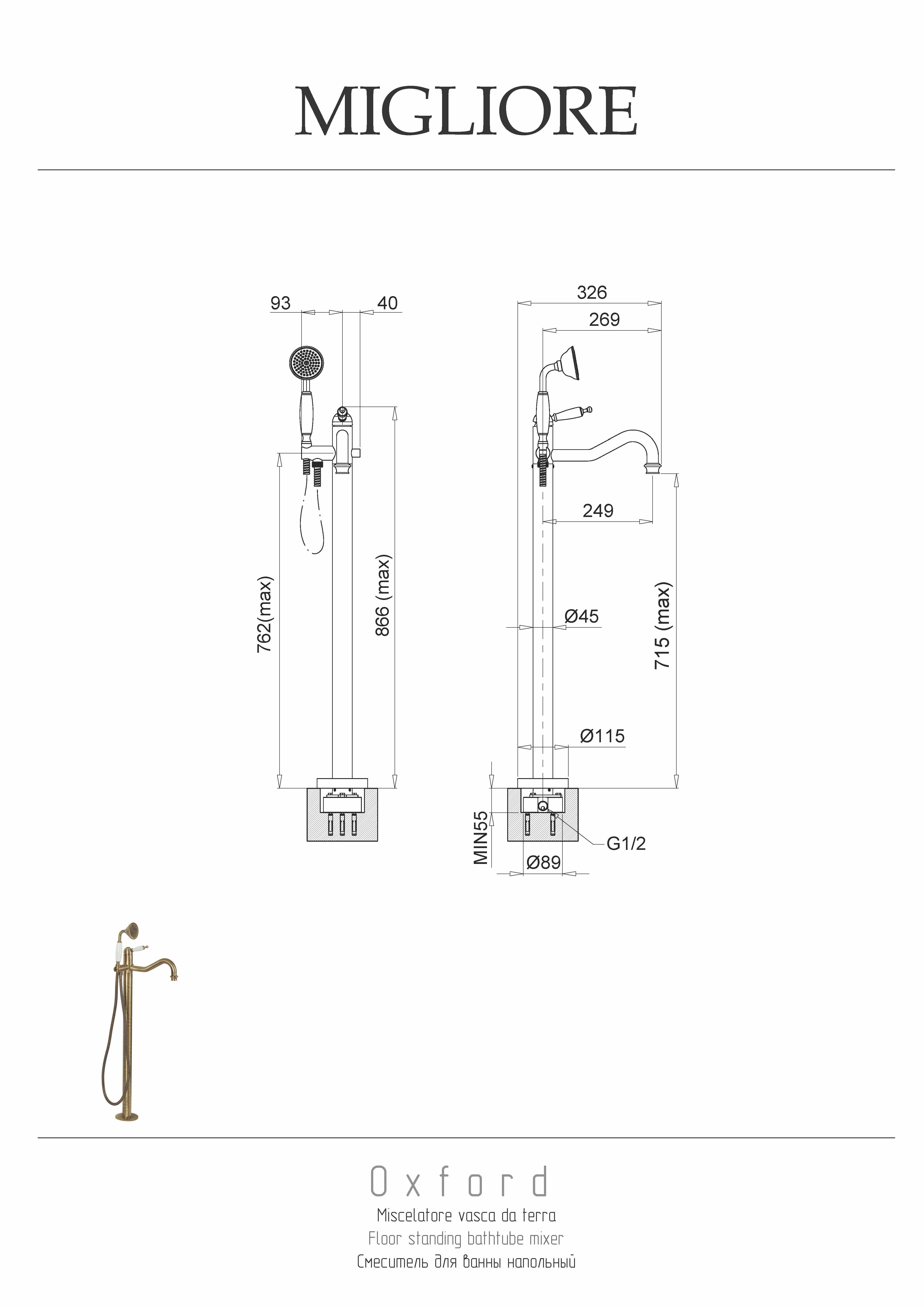 —Смеситель для ванны Migliore OXFORD 19557 напольный бронза