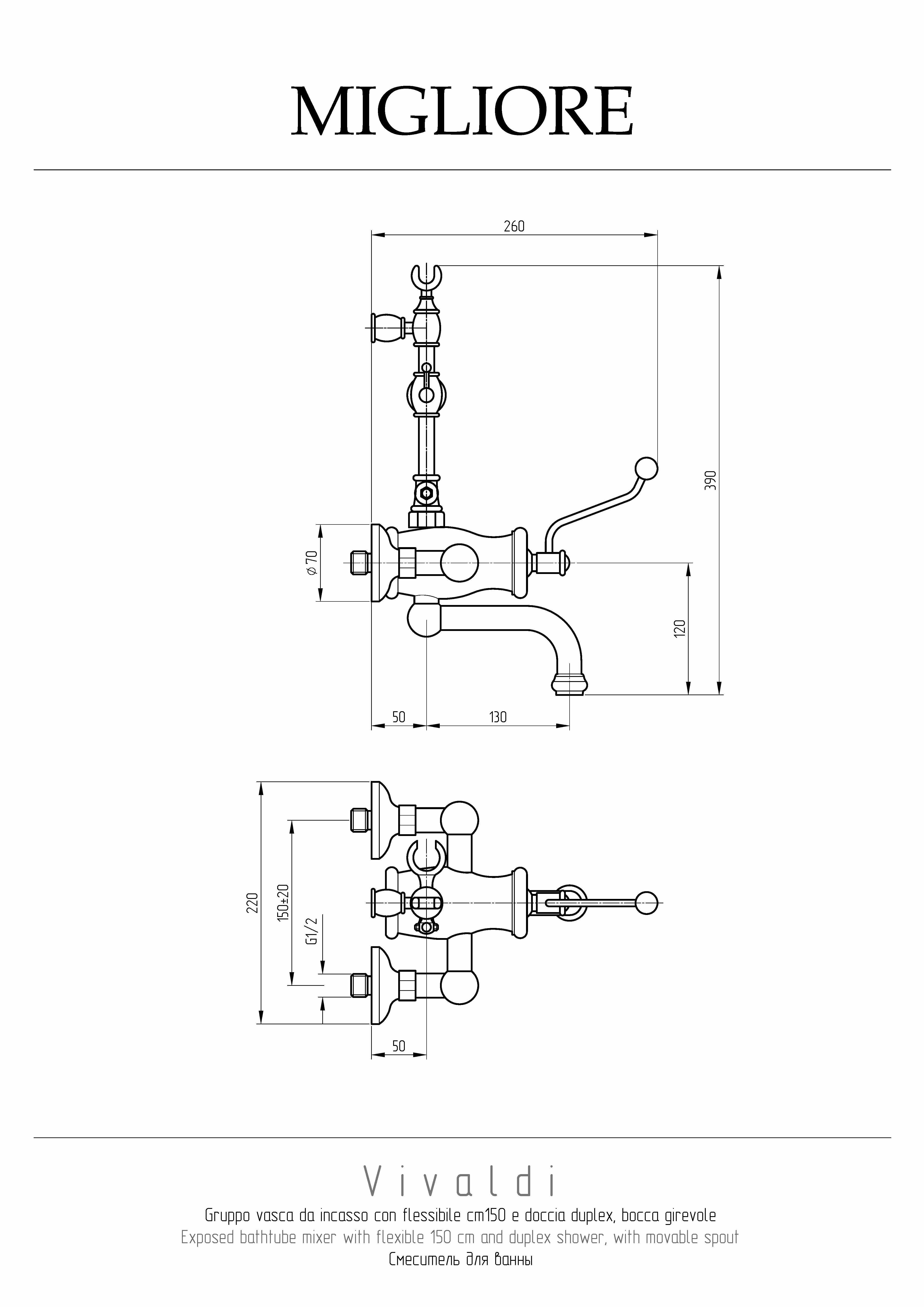 —Смеситель для ванны Migliore VIVALDI 19536 настенный бронза