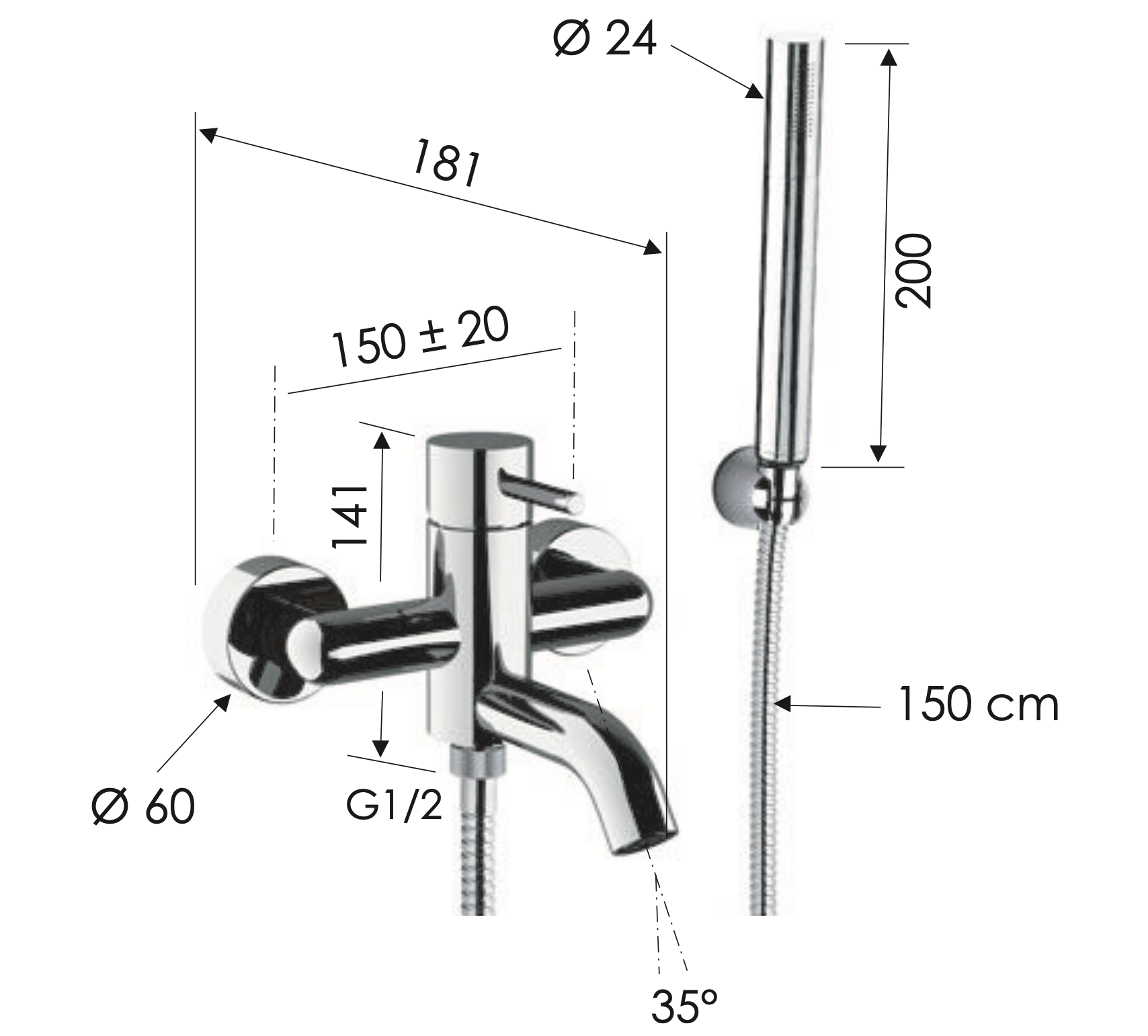 —Смеситель для ванны Remer X Style X02NO настенный черный без термостата