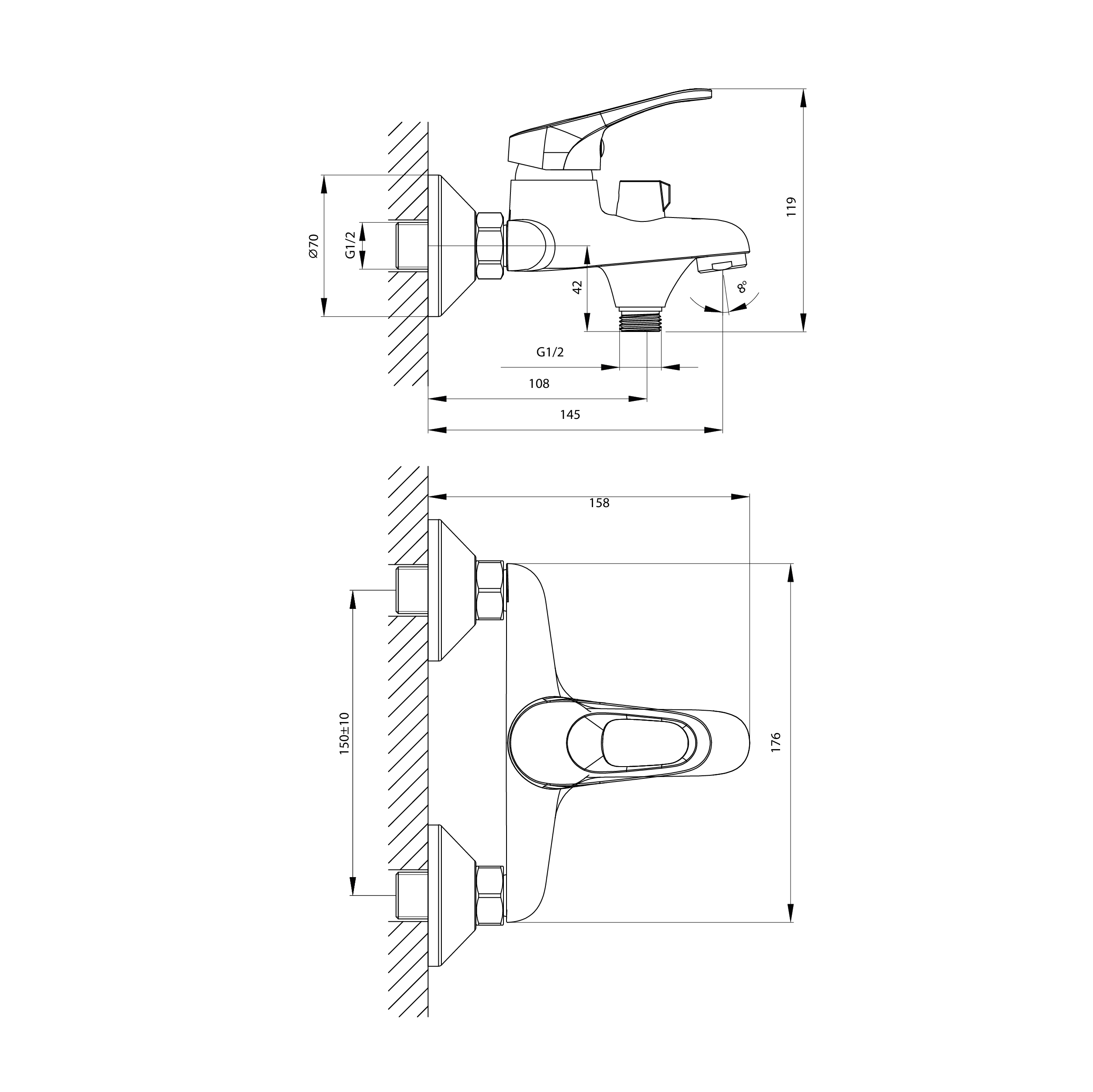 —Смеситель для ванны Rossinka B B35-30 настенный хром
