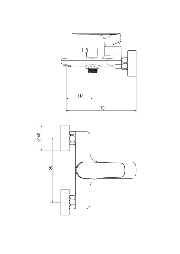 —Смеситель для ванны Tokito YAMANASHI TOK-YAM-1014 настенный хром