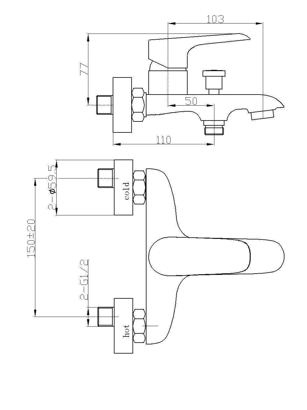 —Смеситель для ванны WeltWasser WW MX BONN 303 -10000002003 настенный хром без термостата