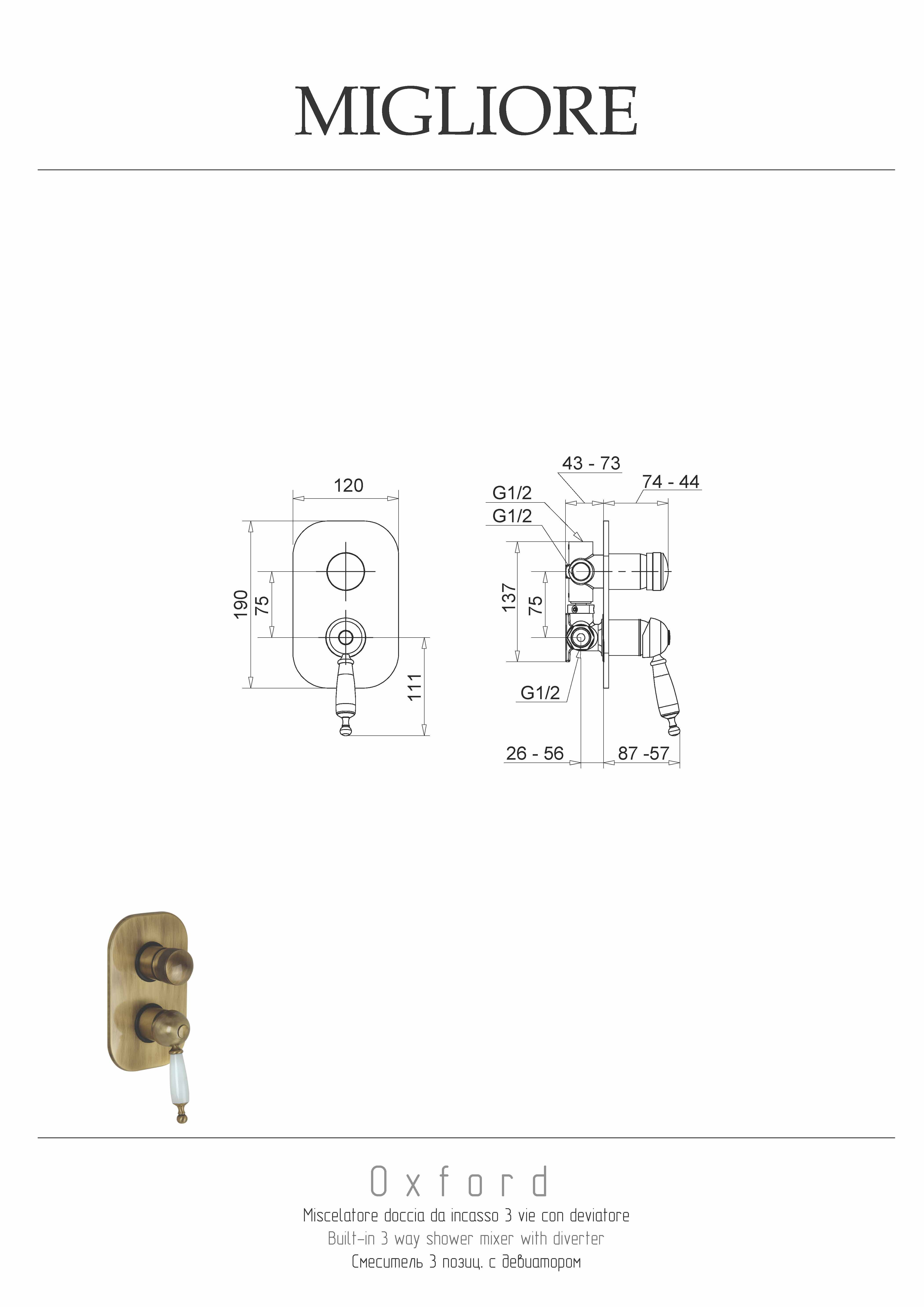 Смеситель душа Migliore OXFORD 19139 встраиваемый в стену хром
