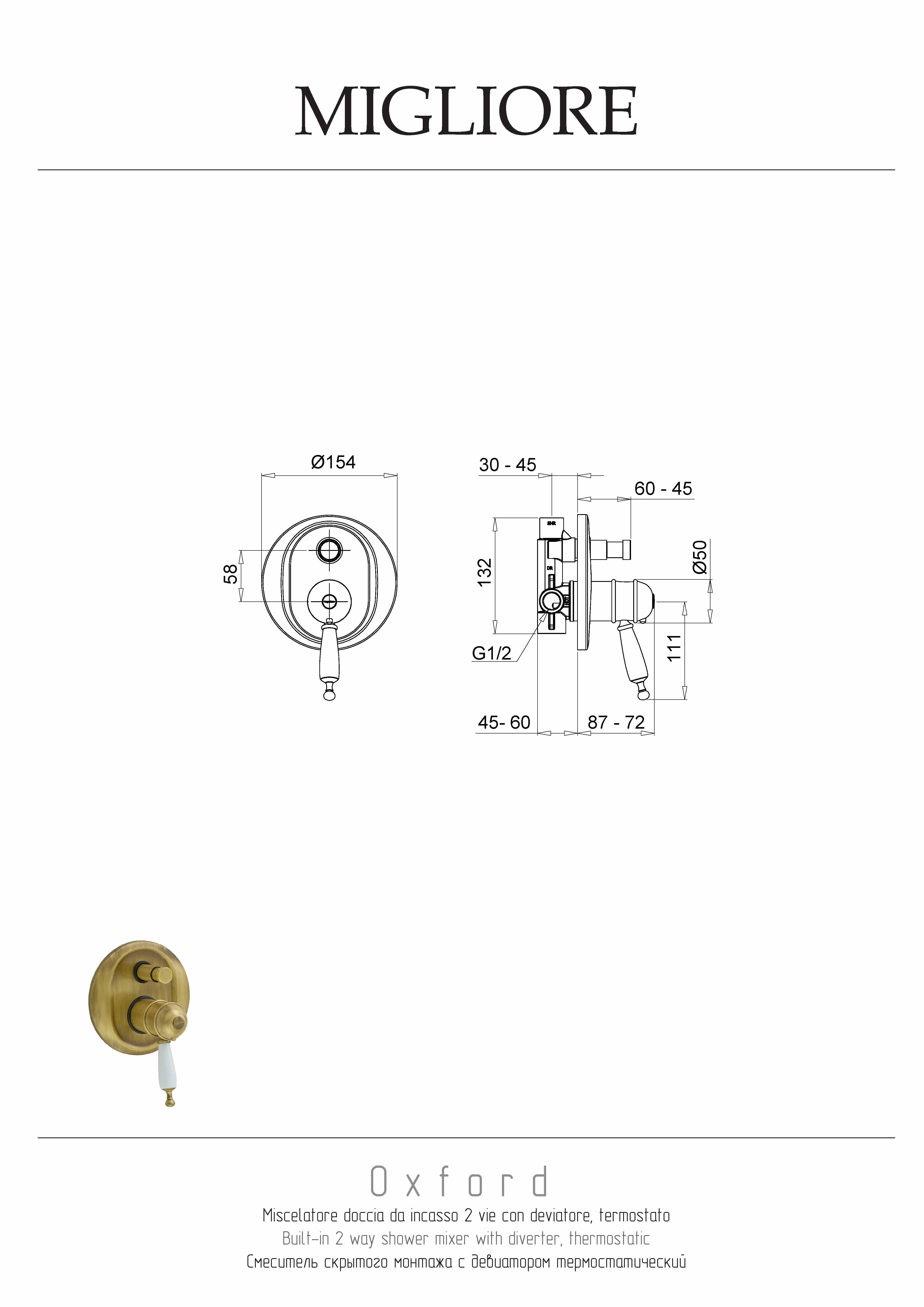 —Смеситель душа Migliore OXFORD 19181 встраиваемый в стену золото