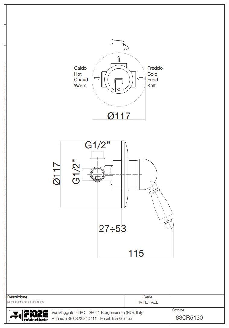 Смеситель Fiore Imperiale 83OO5130 встраиваемый золото