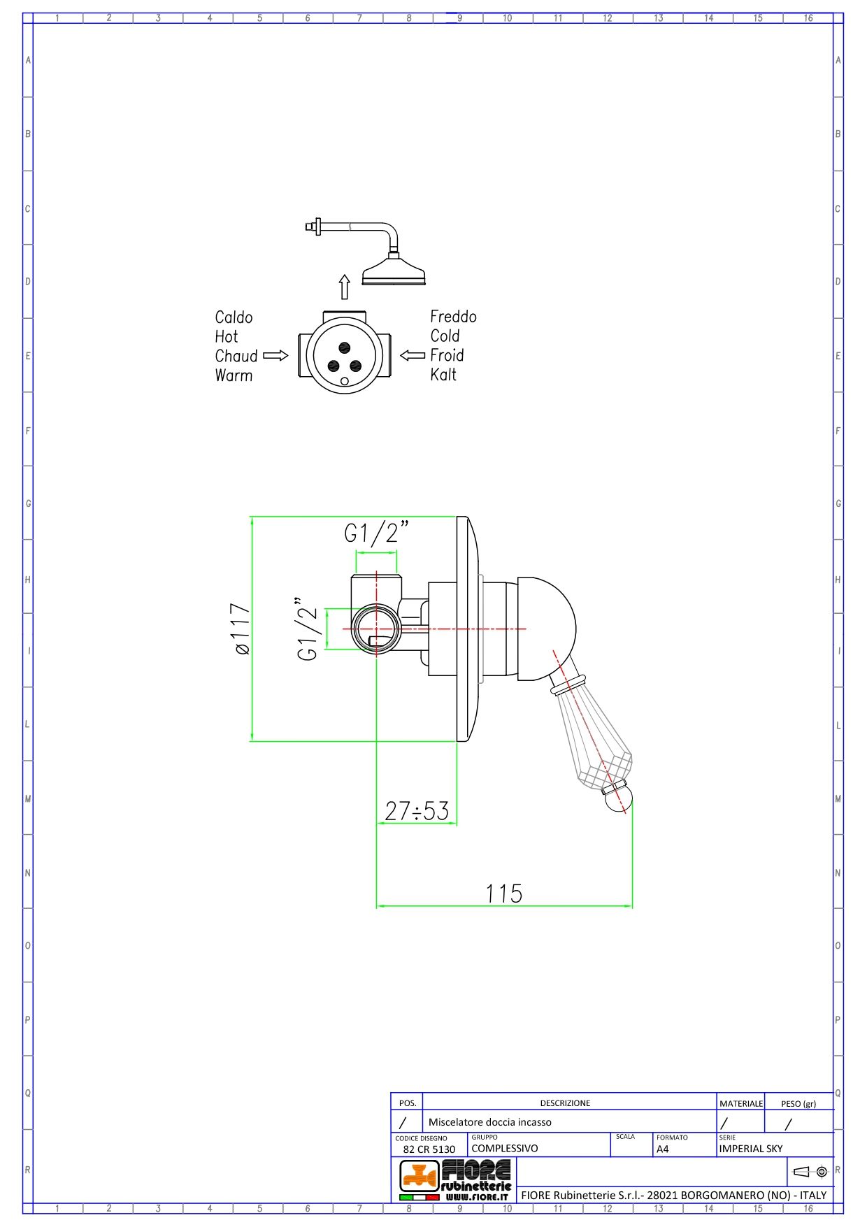 —Смеситель Fiore Imperiale Sky 82CR5130 встраиваемый хром