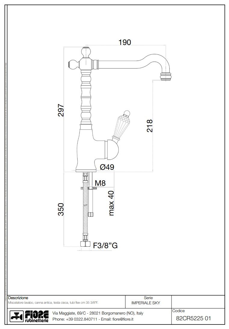 Смеситель Fiore Imperiale Sky 82OO5225 на раковину золото