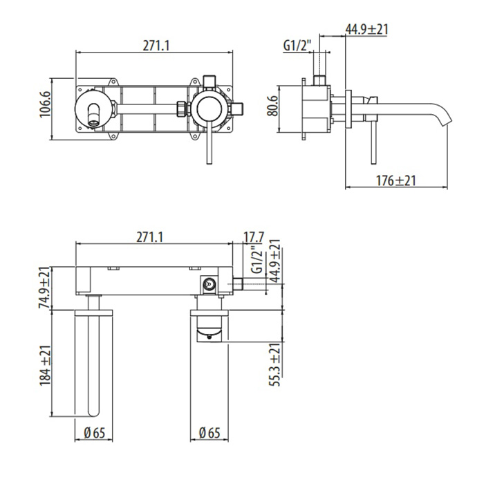 —Смеситель Gattoni CIRCLE TWO 9135/91BO встраиваемый в стену белый