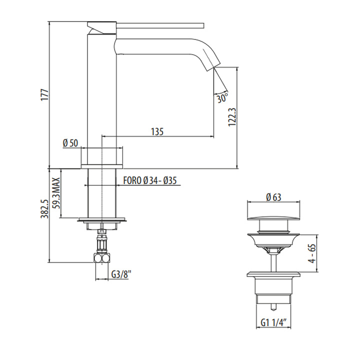 Смеситель Gattoni CIRCLE TWO 9144/91NO на раковину черный без термостата