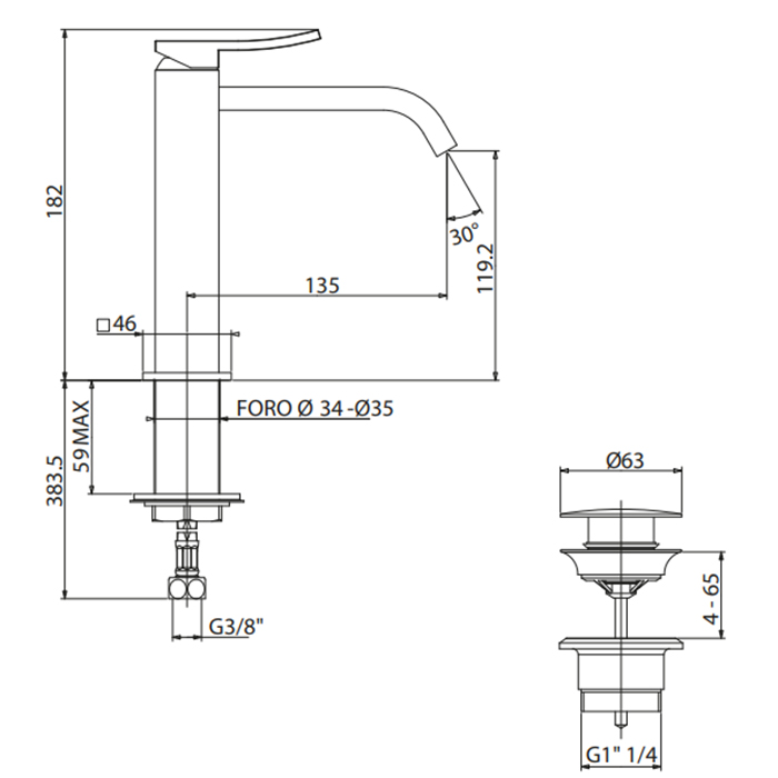 —Смеситель Gattoni ELY 8844/88C0 на раковину хром