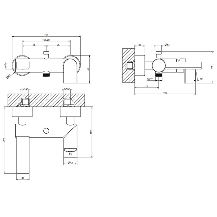 —Смеситель Gessi Emporio Via manzoni 38613#149 настенный никель без термостата