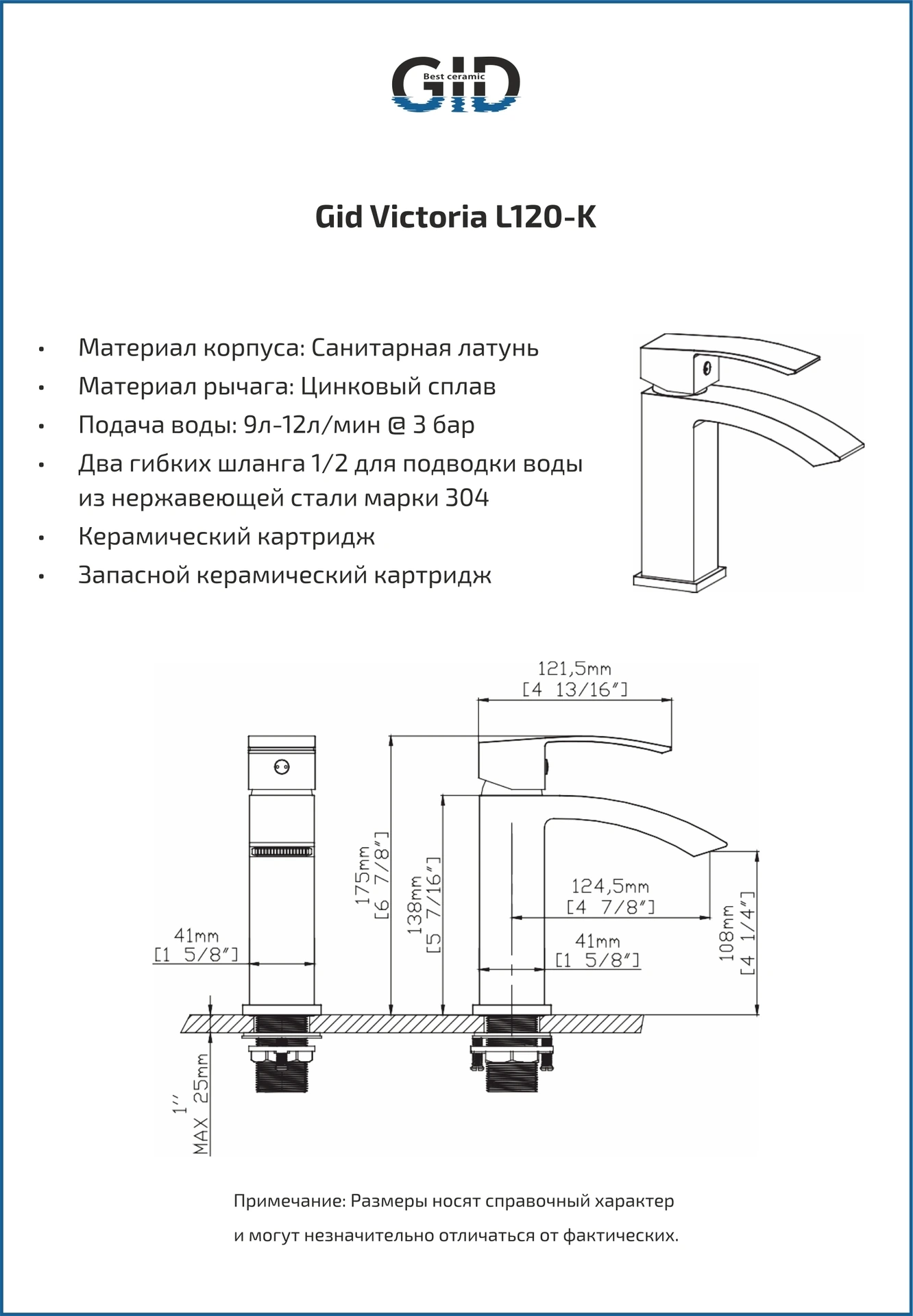 Смеситель Gid Cascada Victoria L120-BM-K (L120BMK) на раковину черный матовый