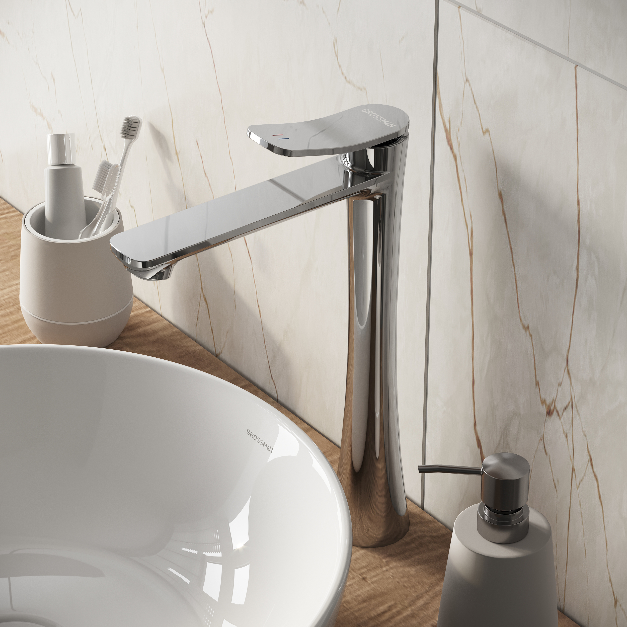 Смеситель для раковины высокий Advans 520.K35.09.100 ТМ GROSSMAN в хромированном исполнении - это идеальное сочетание высокого качества и доступной цены. Она подходит для установки на столешницу к накладной раковине.
