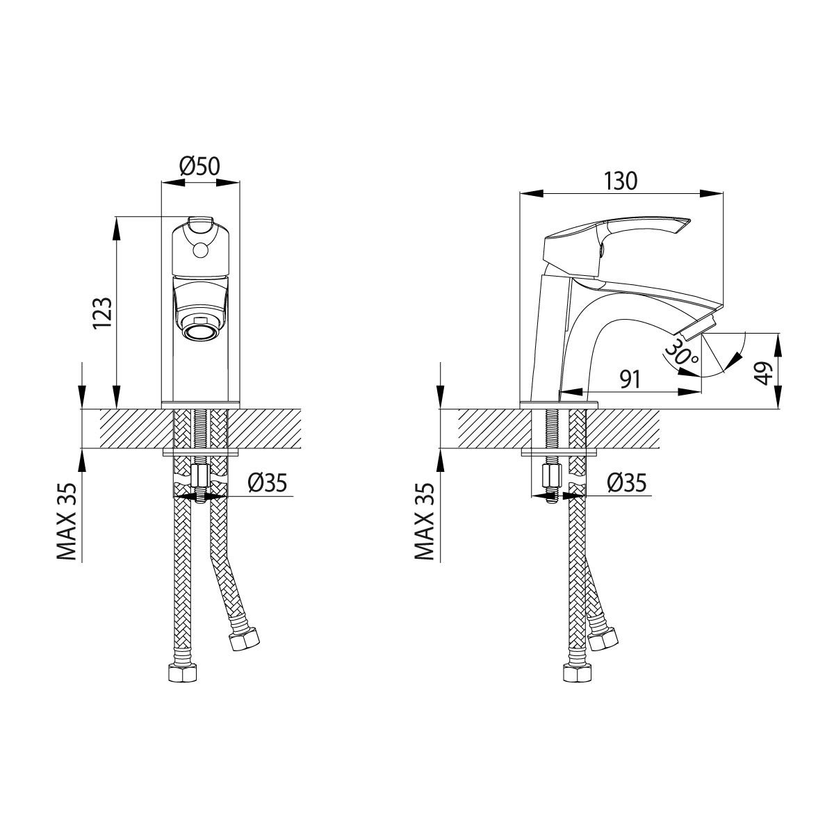 Серия смесителей plus STRIKE - плюс для дома и бюджета. Комплектация:  Аэратор, Керамический картридж 25 мм, Гибкая подводка 1/2" 35 см, Металлическая рукоятка