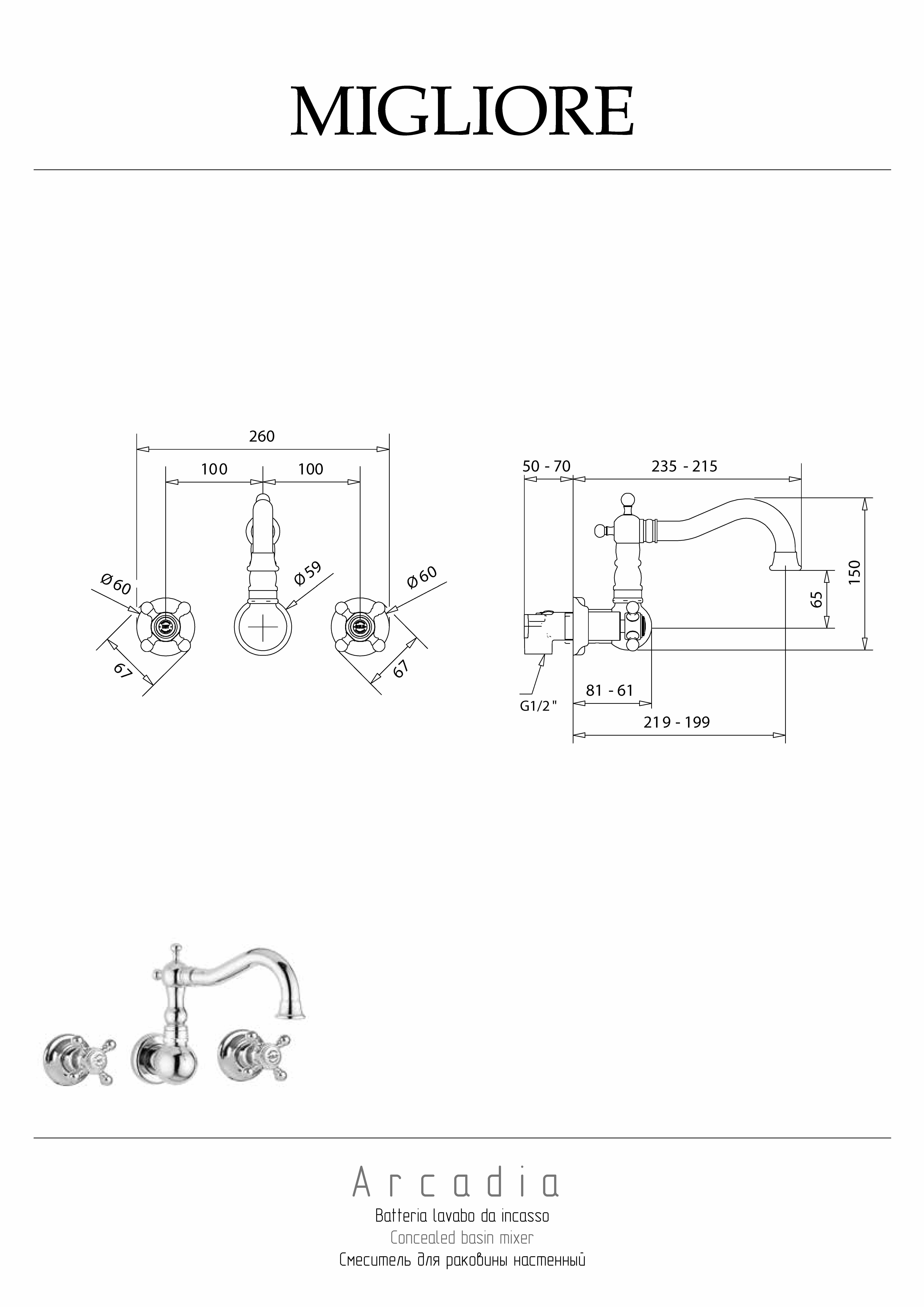 Смеситель Migliore ARCADIA 18399 настенный золото