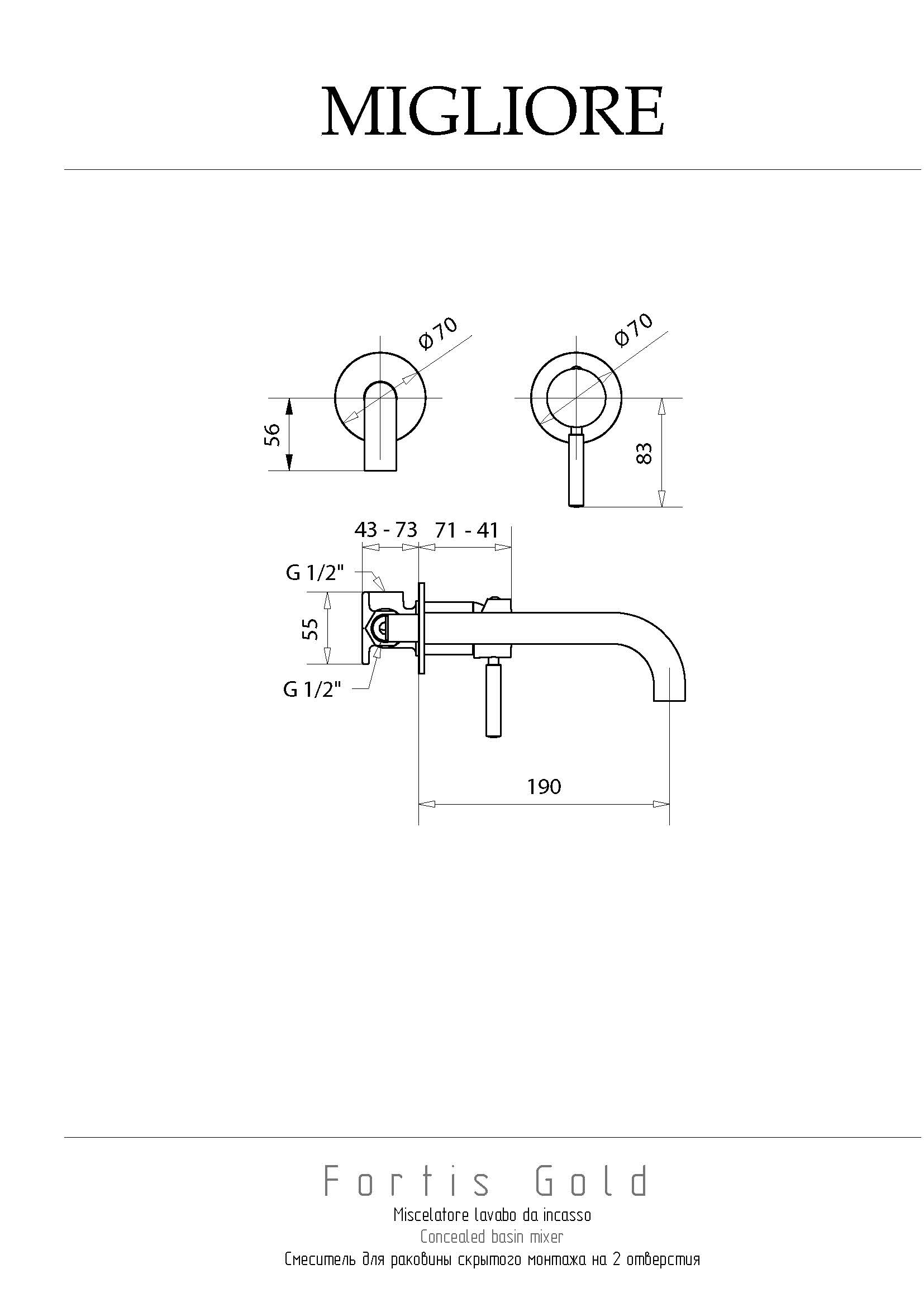 Смеситель Migliore FORTIS GOLD 27983 встраиваемый в стену золото