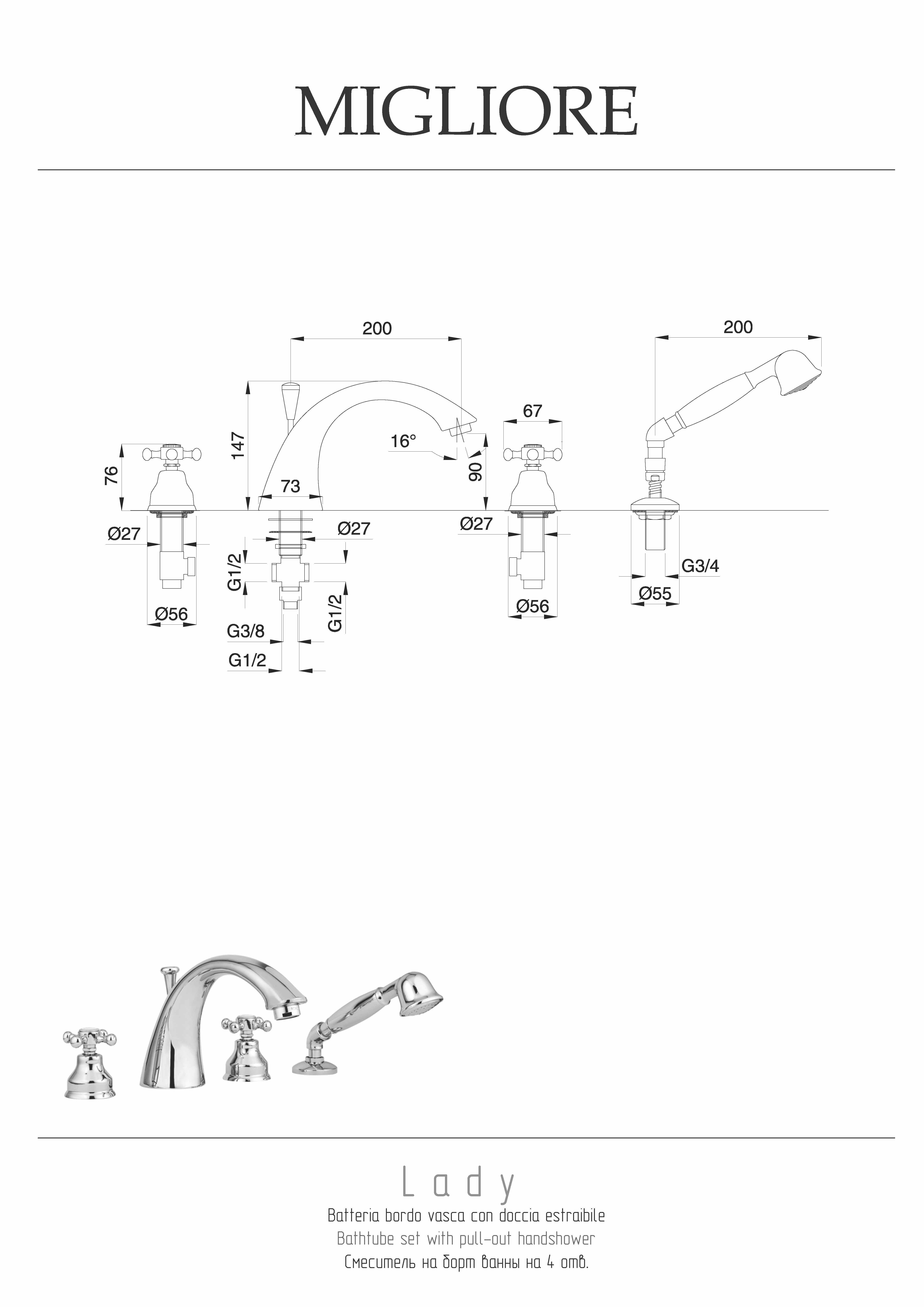 —Смеситель Migliore LADY 18812 на борт ванны бронза