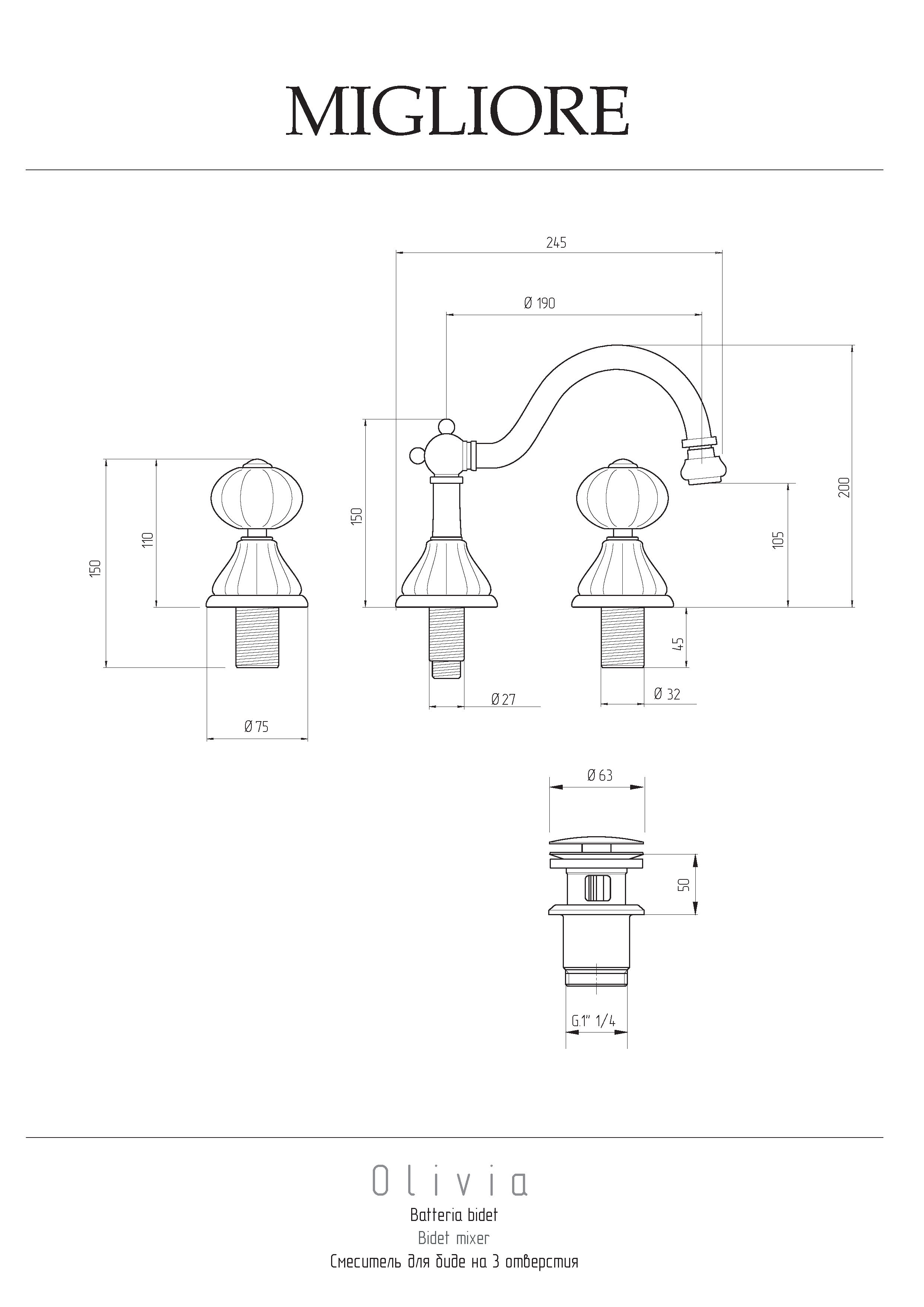Смеситель Migliore OLIVIA 19002 на биде белый/хром