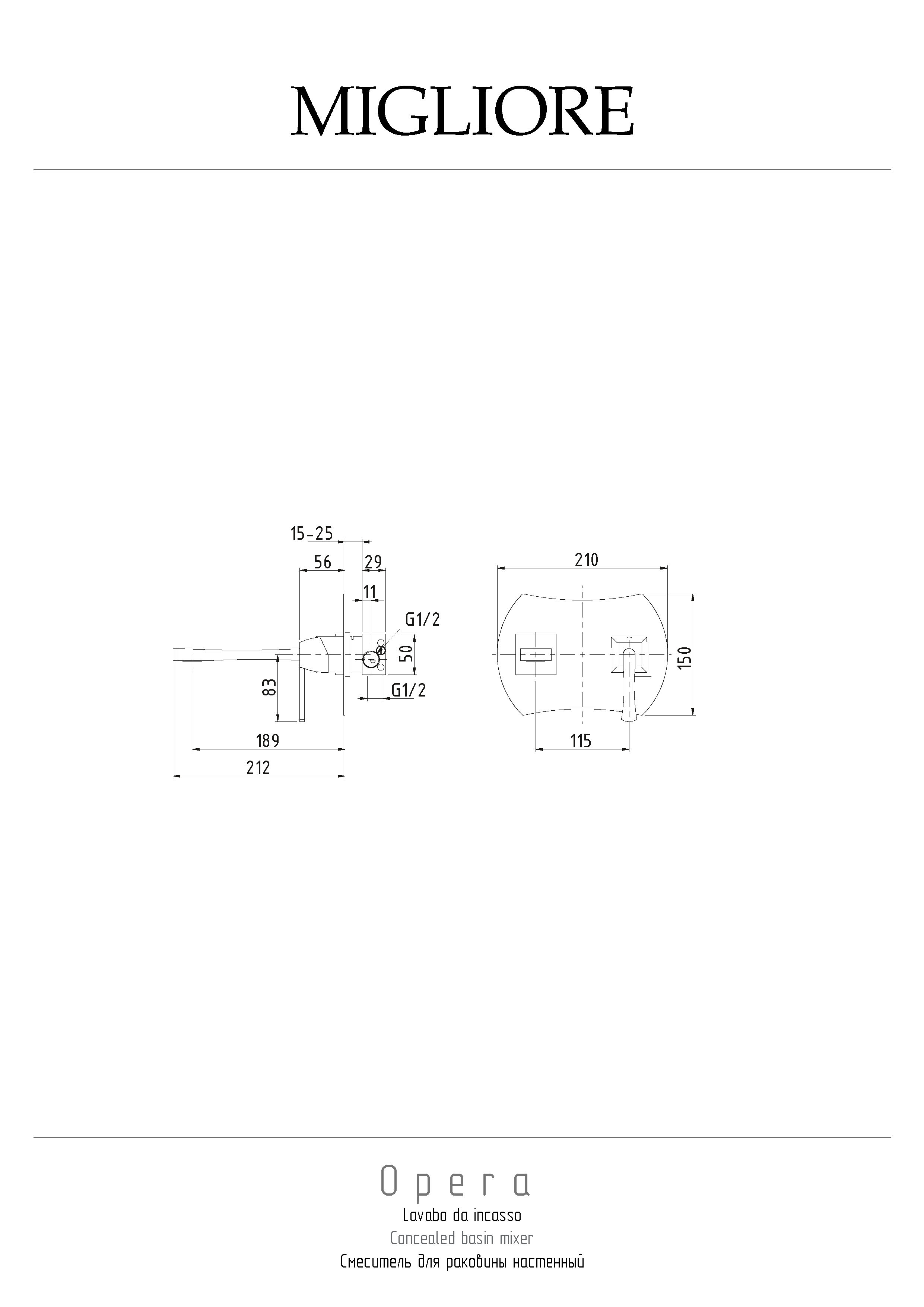 —Смеситель Migliore OPERA 19052 встраиваемый в стену золото