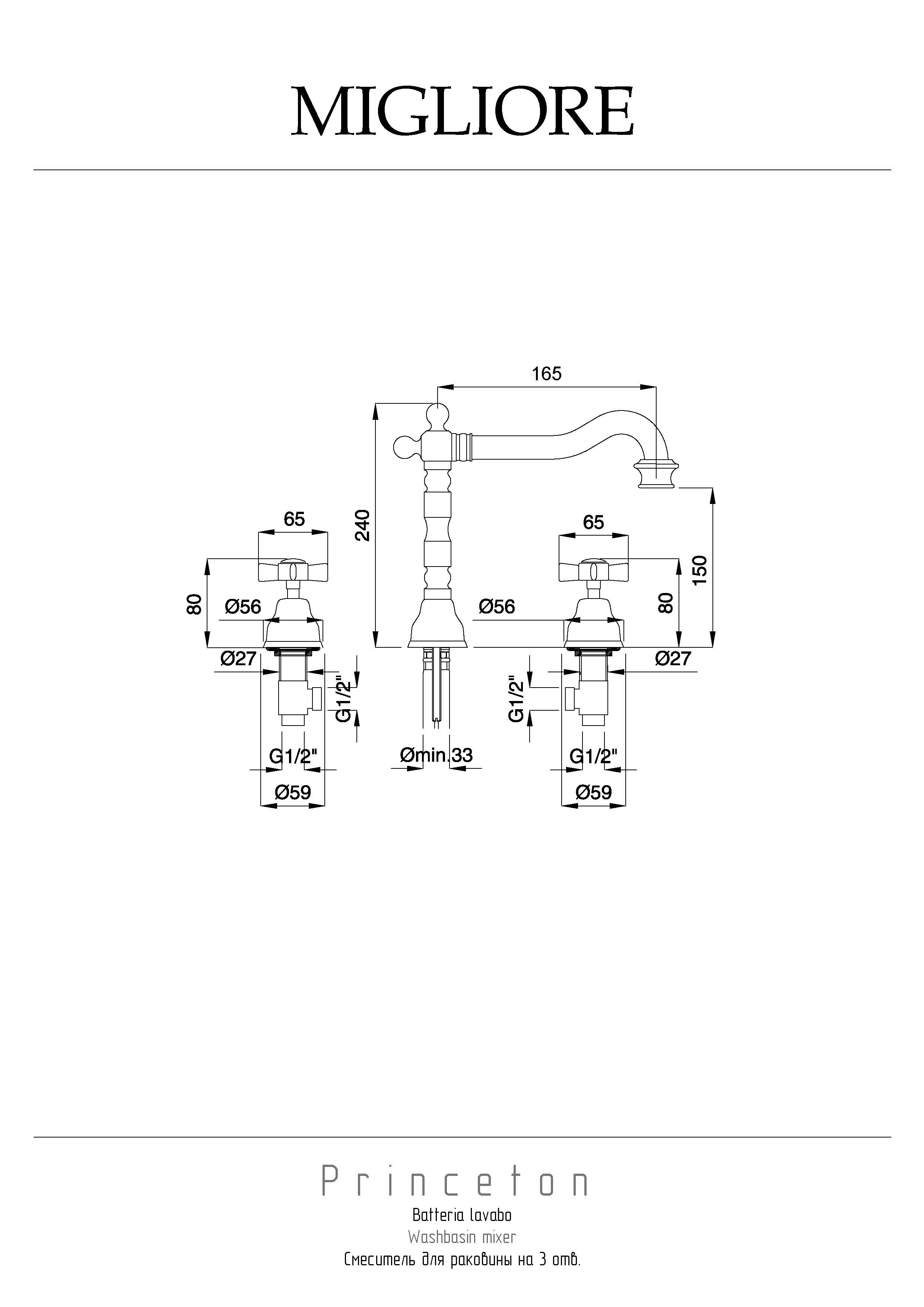 —Смеситель Migliore PRINCETON 19362 на раковину хром