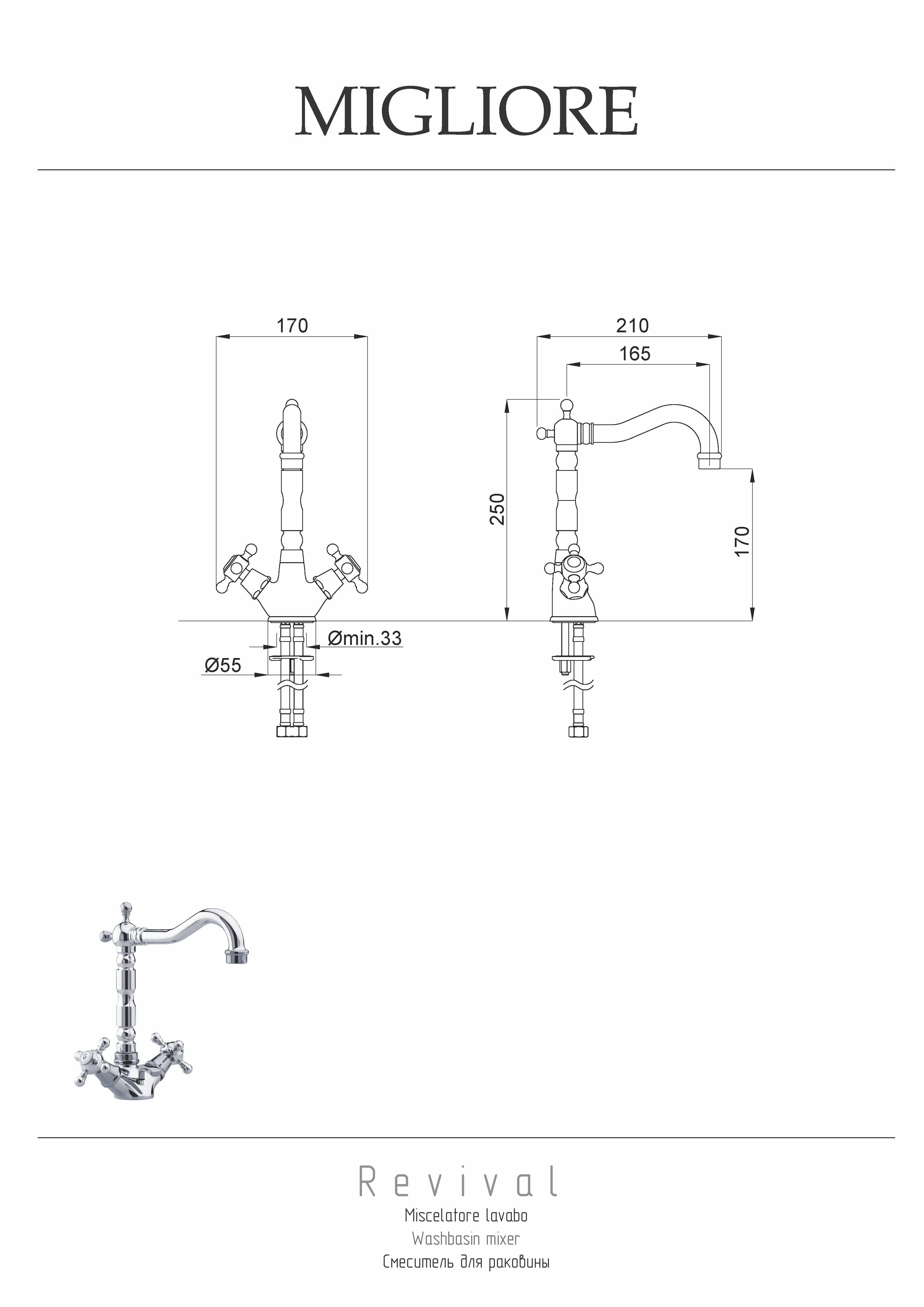 Смеситель Migliore REVIVAL 19492 на раковину бронза