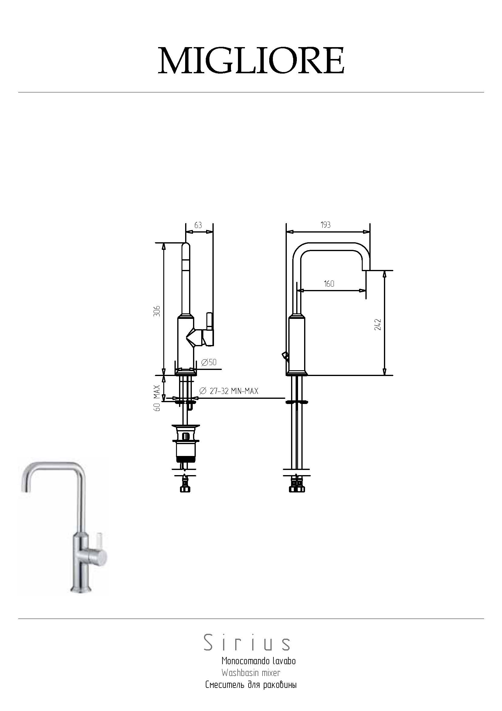 —Смеситель Migliore SIRIUS 28173 на раковину хром