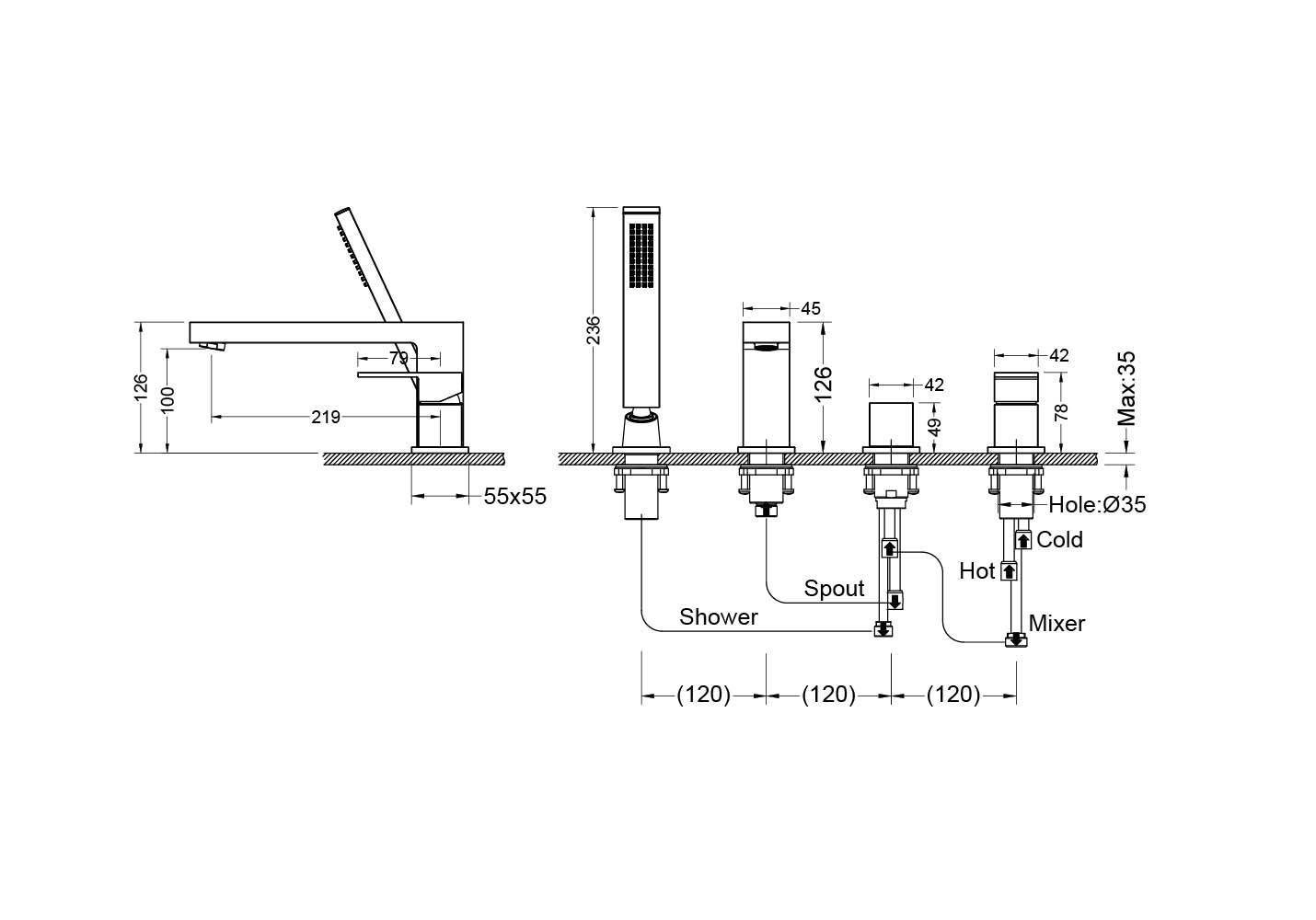Смеситель Aquatek ЛИБРА AQ1648MB на борт ванны черный матовый без термостата