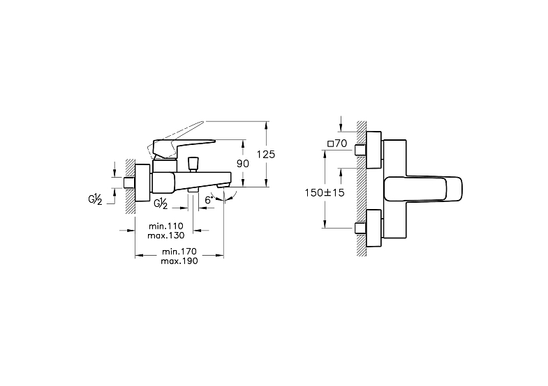 —Смеситель Vitra Root Square A42737EXP настенный хром без термостата