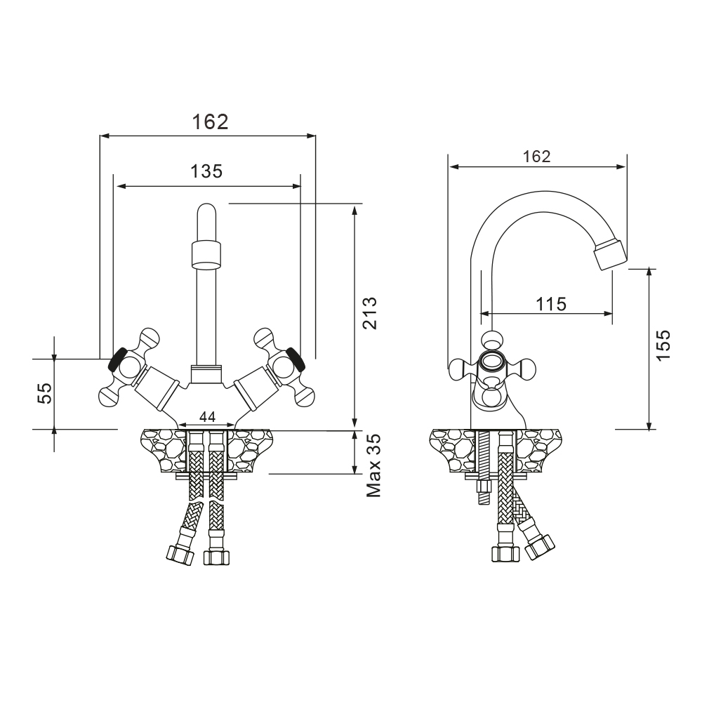 Хромированное покрытие Mirror shine обеспечивает прочное сцепление с материалом смесителя и гарантируя долгий срок службы и легкий уход.