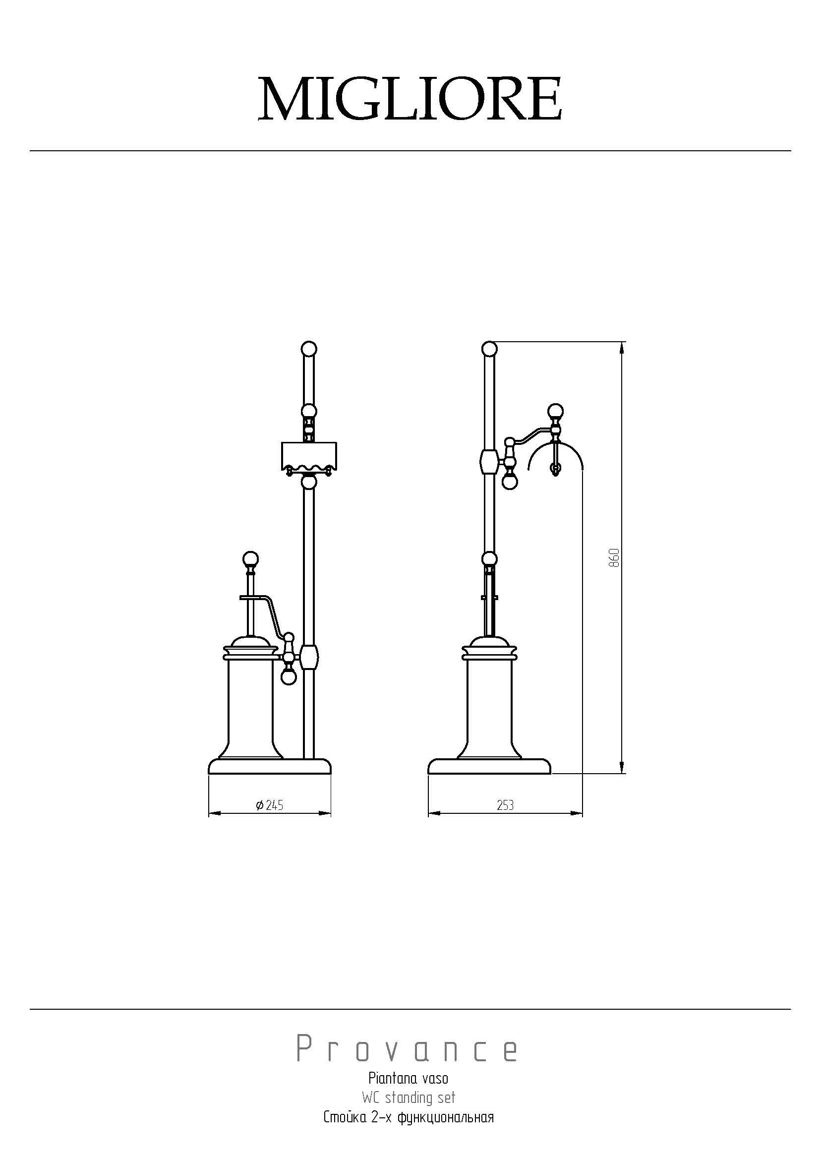 Аксессуары коллекции PROVANCE бренда MIGLIORE имеют нежный цветочный декор на керамике и создают уют в ванной комнате в классическом или рустикальном стиле. Стойка для унитаза коллекции PROVANCE - это многофункциональный и красивый аксессуар для ванной комнаты. На стойке расположены бумагодержатель с крышкой и керамический ерш.