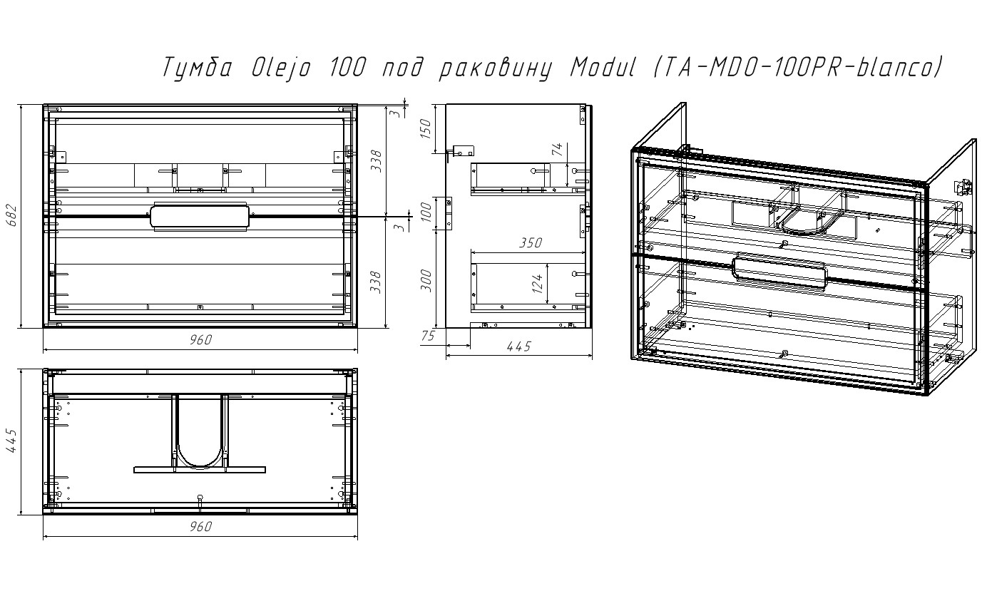 —Тумба TA-MBO-100PR-blanco 100x45x68 + Раковина 4627173210447 Taliente