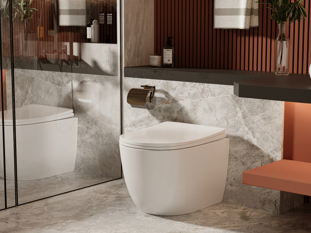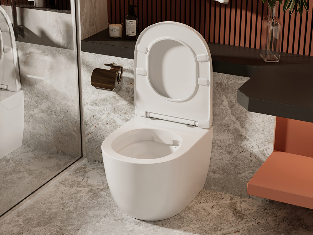 —Унитаз приставной Abber Bequem AC1111 белый с сиденьем микролифт безободковый каскадный смыв