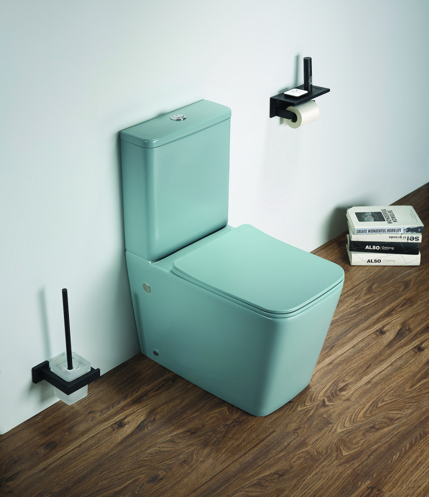 —Унитаз напольный с бачком CeramaLux 2170AXMLG зеленый матовый с сиденьем микролифт безободковый каскадный смыв