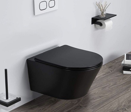—Унитаз подвесной CeramaLux B2330-1MB черный матовый с сиденьем микролифт каскадный смыв