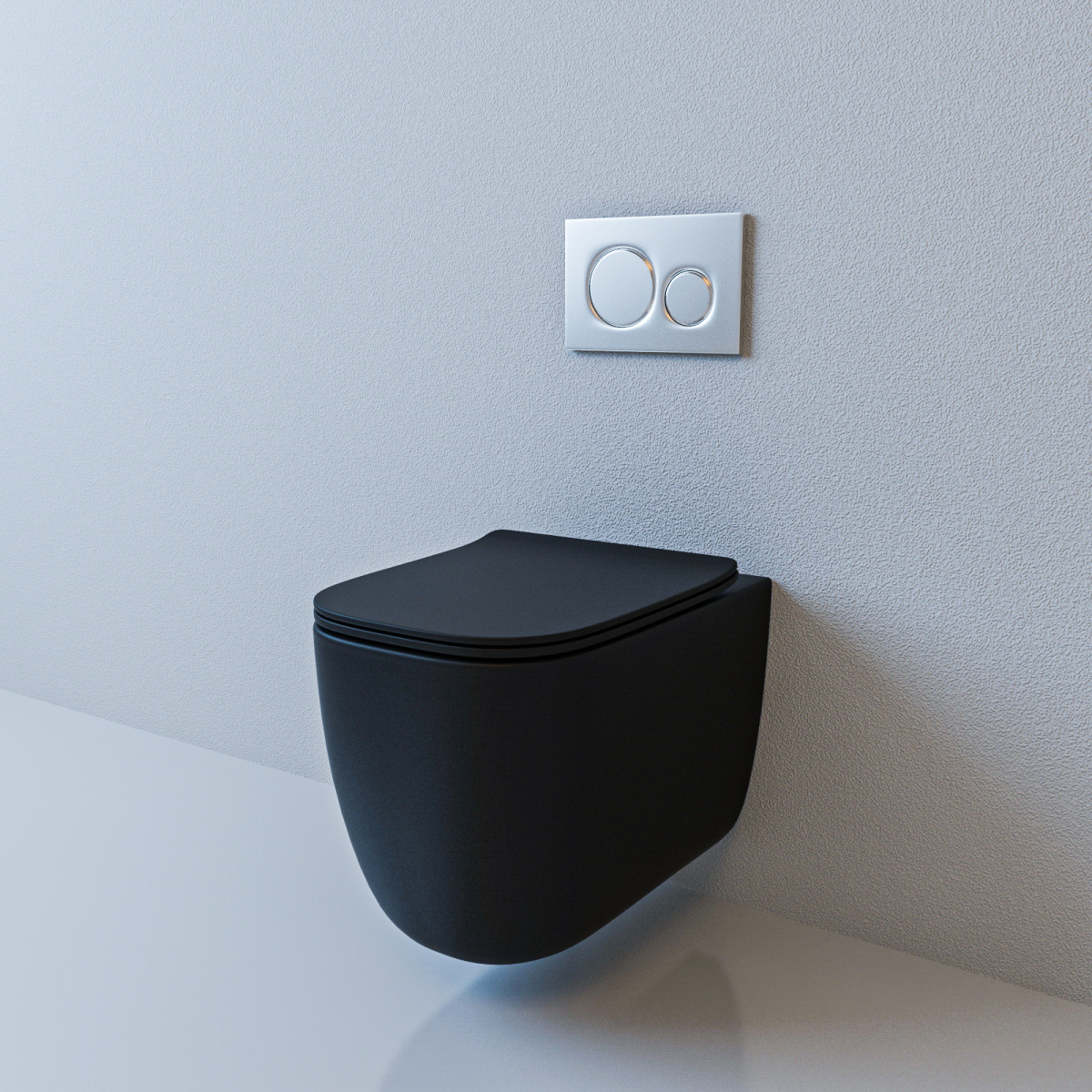 БЕЗОБОДКОВЫЙ подвесной унитаз. Горизонтальный выпуск ("P-Trap" 180 мм). Цвет: чёрный матовый. Сидение: ультратонкое, быстросъёмное, дюропласт с металлическим крепежом и микролифтом (механизм "Soft Close").