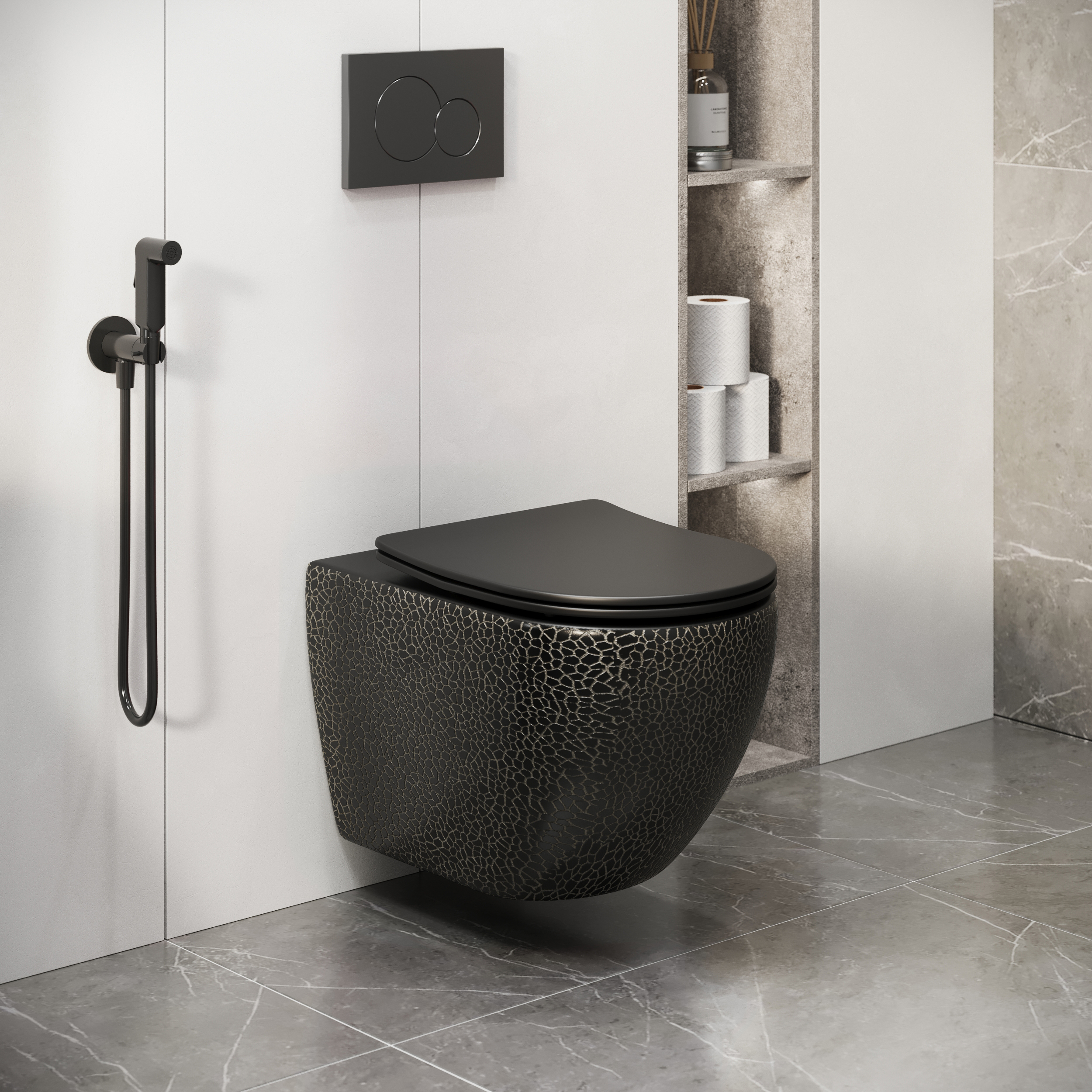 Унитаз подвесной Grossman Санфаянс GR-4455BBLS черный глянцевый с сиденьем микролифт безободковый каскадный смыв