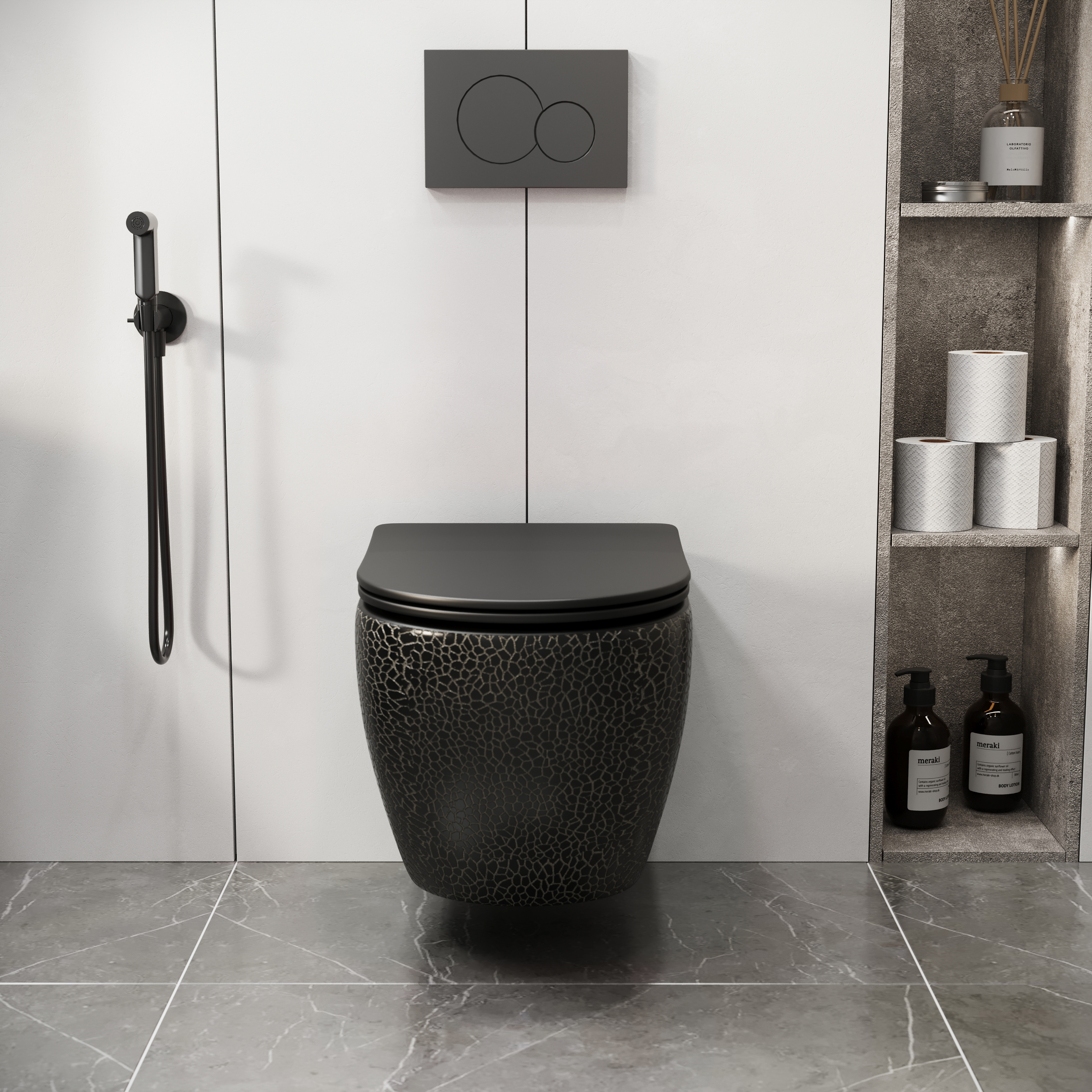 —Унитаз подвесной Grossman Санфаянс GR-4455BBLS черный глянцевый с сиденьем микролифт безободковый каскадный смыв