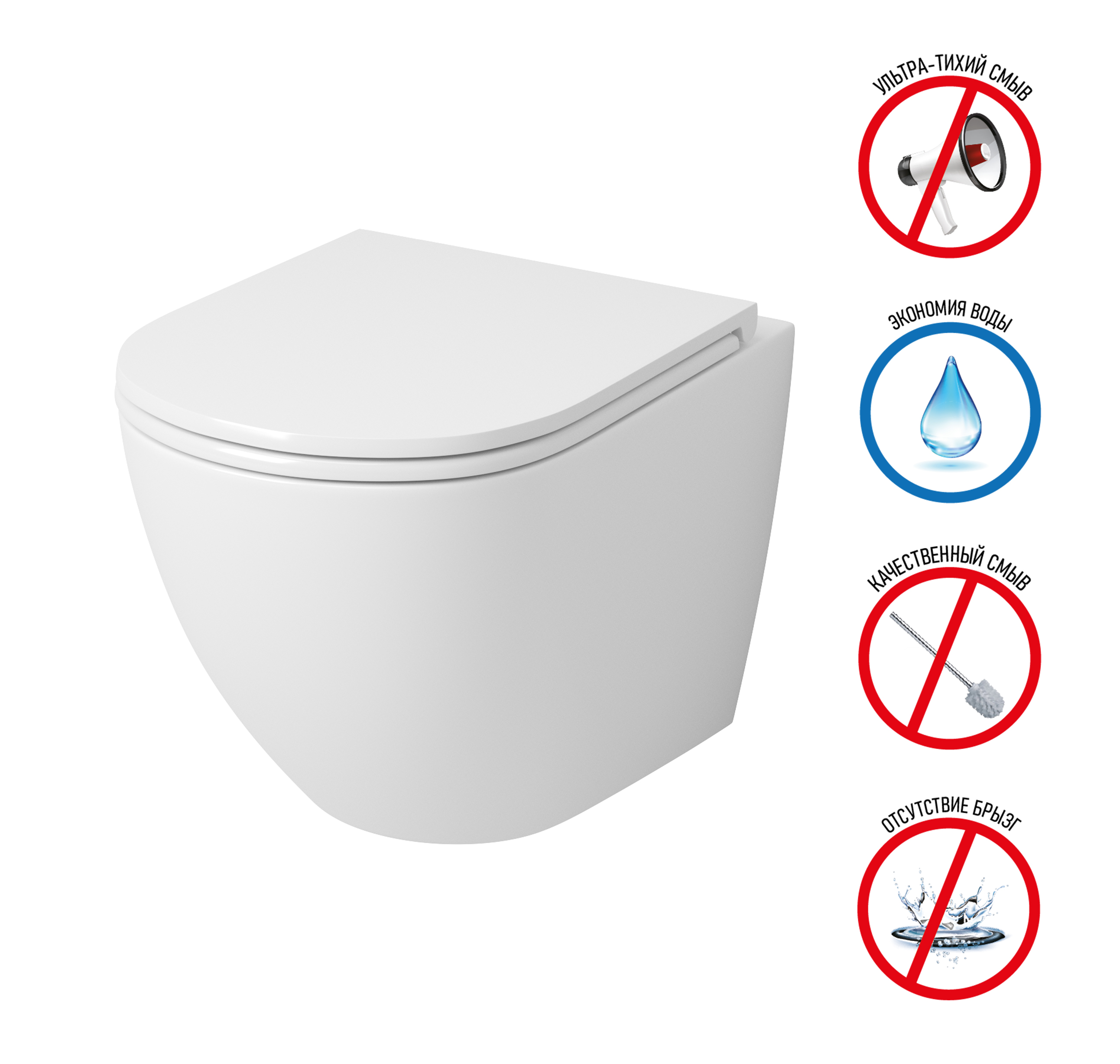 —Унитаз подвесной Grossman Торнадо GR-4455SQ белый глянцевый с сиденьем микролифт безободковый смыв торнадо