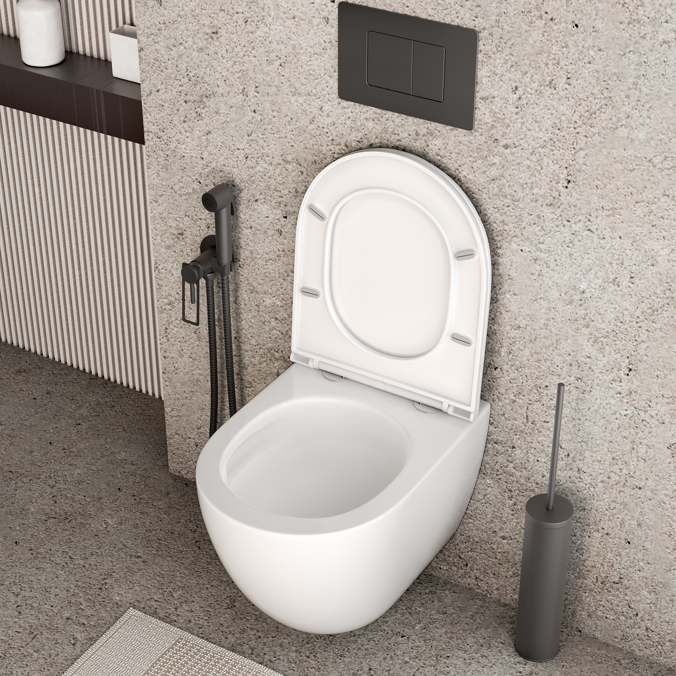 - Система антивсплеск предотвращает попадание брызг за пределы ободка унитаза;