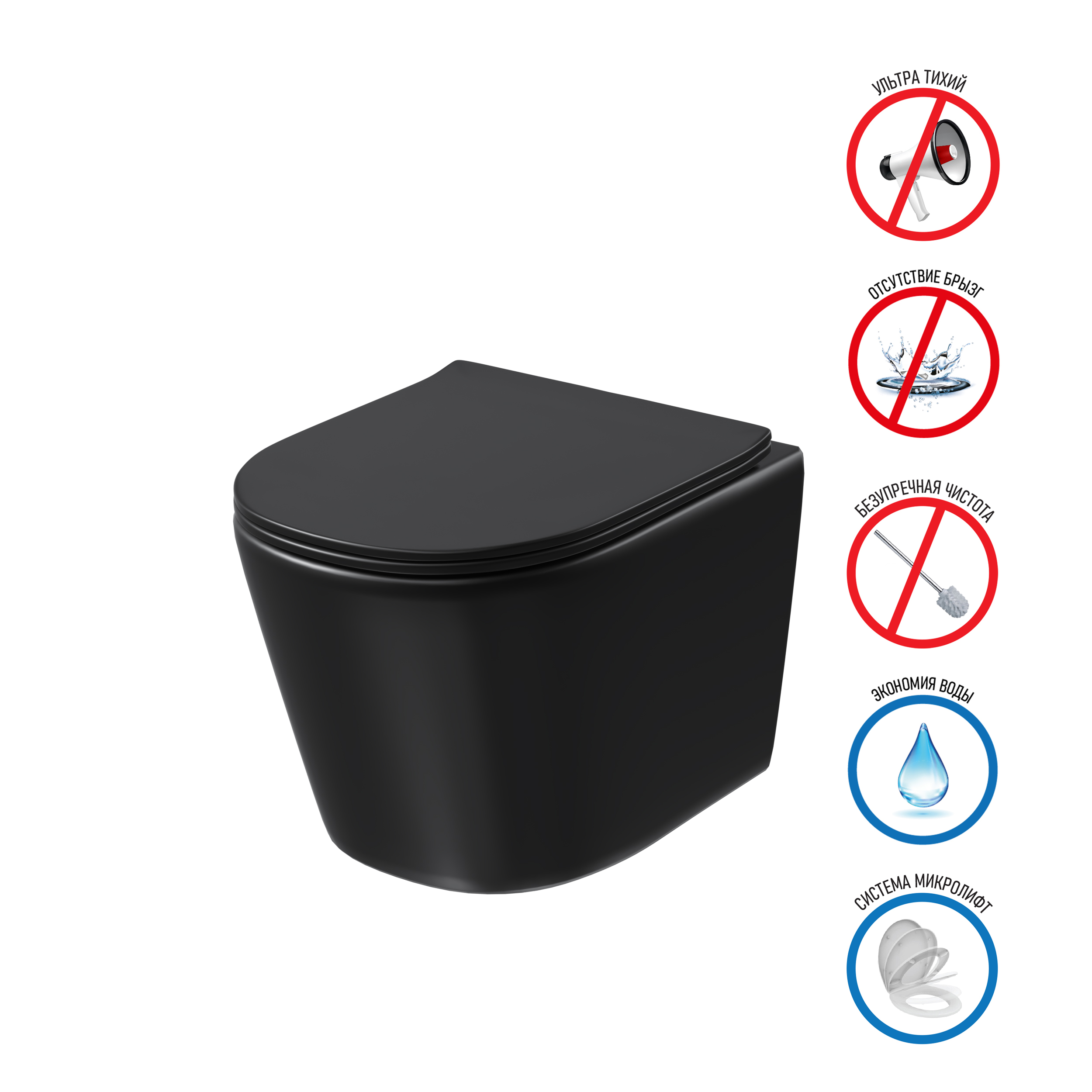 —Унитаз подвесной Grossman Торнадо GR-4477BMSQ черный матовый с сиденьем микролифт безободковый смыв торнадо
