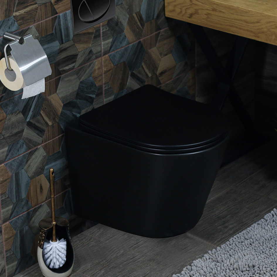 —Унитаз подвесной Melana MLN-310302MB черный с сиденьем микролифт безободковый душевой смыв
